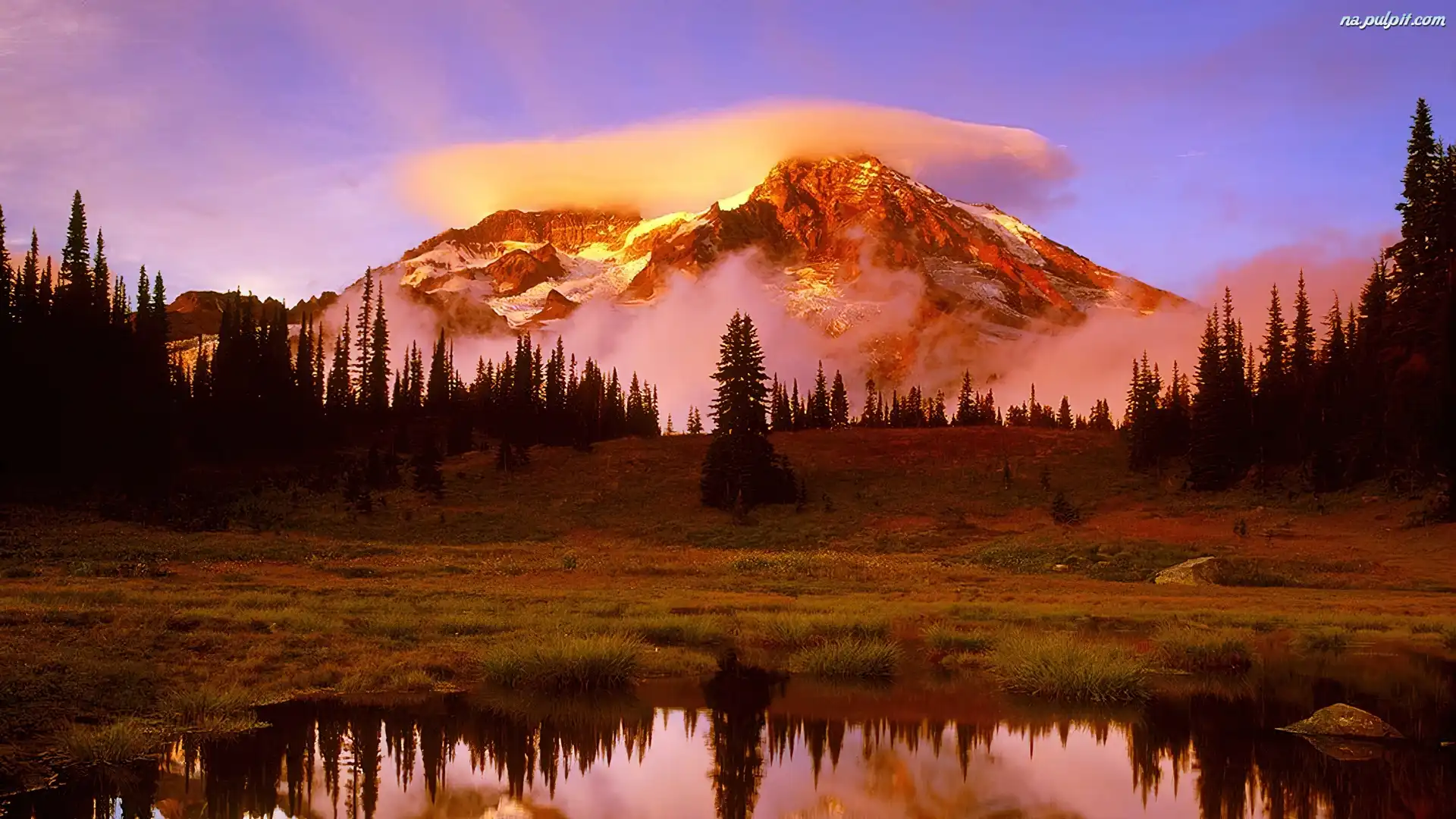 Jezioro, Góry, Słońca, Zachód, Las Na Pulpit