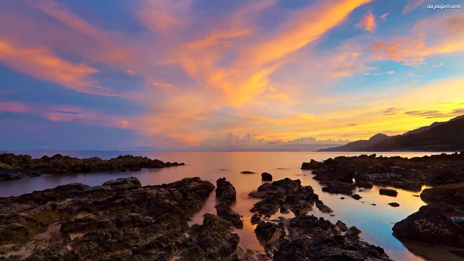 Jezioro, Słońca, Zachod, Skały Na Pulpit