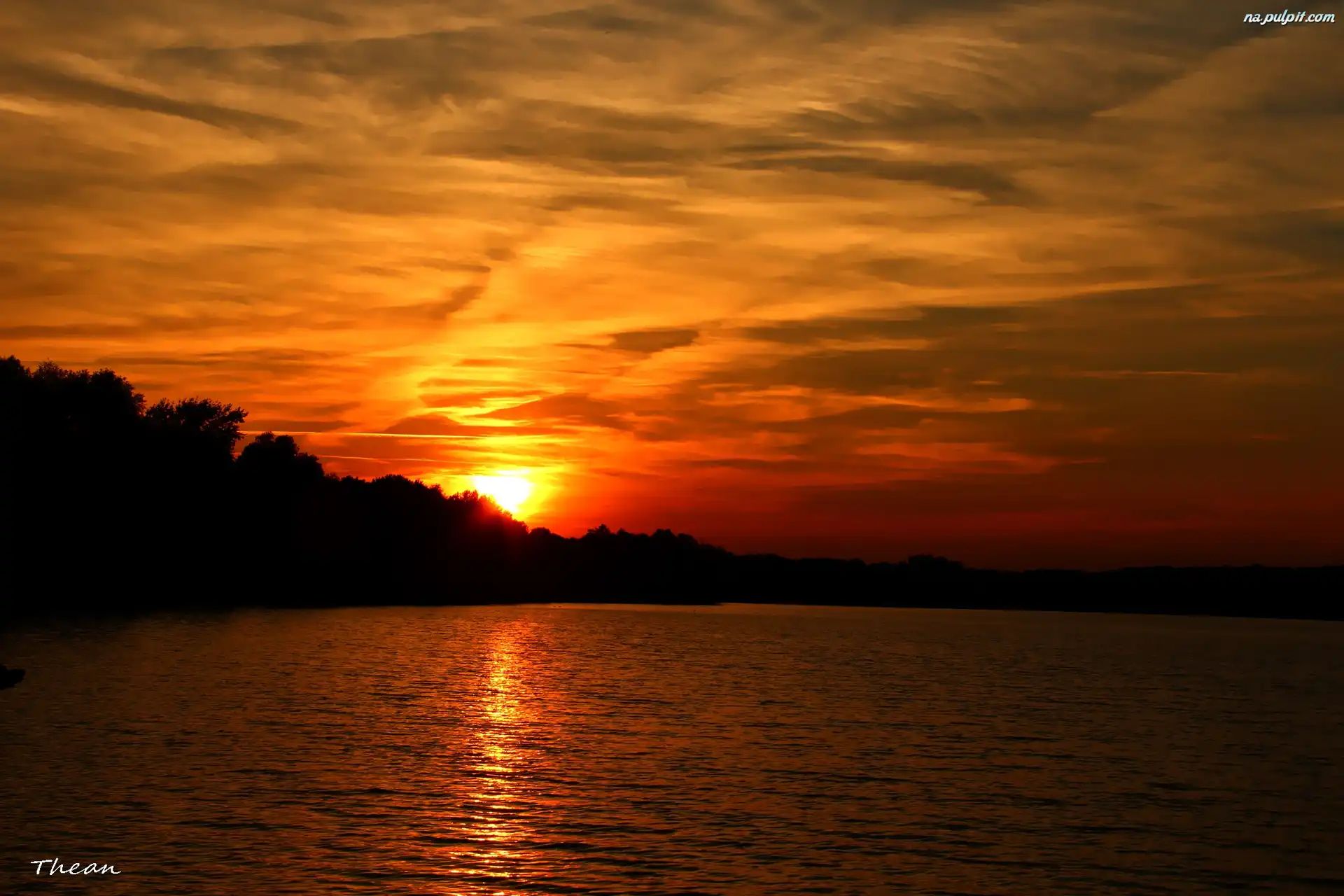Jezioro, Słońca, Zachód, Wieczór Na Pulpit