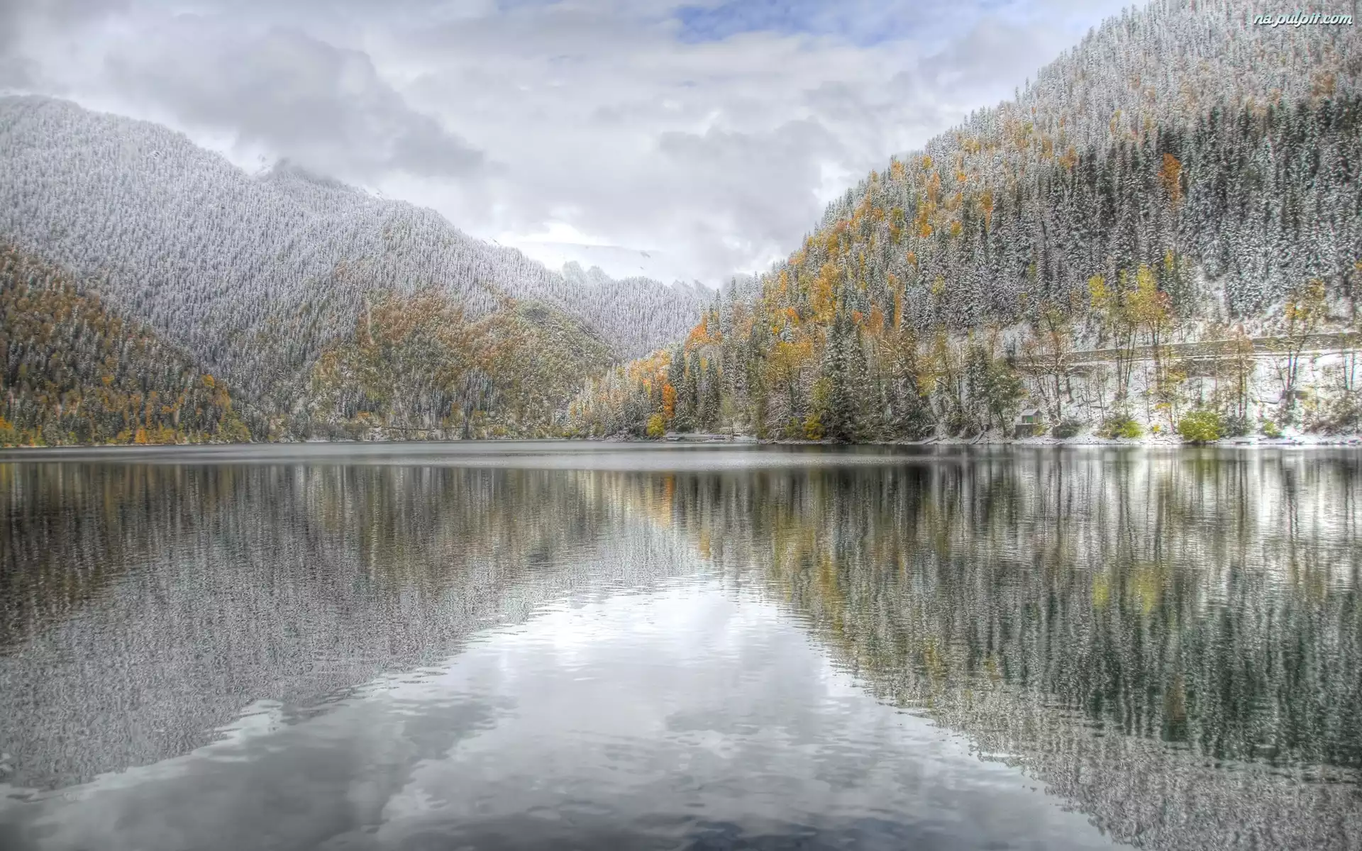 Jezioro, Góry, Zima, Lasy Na Pulpit