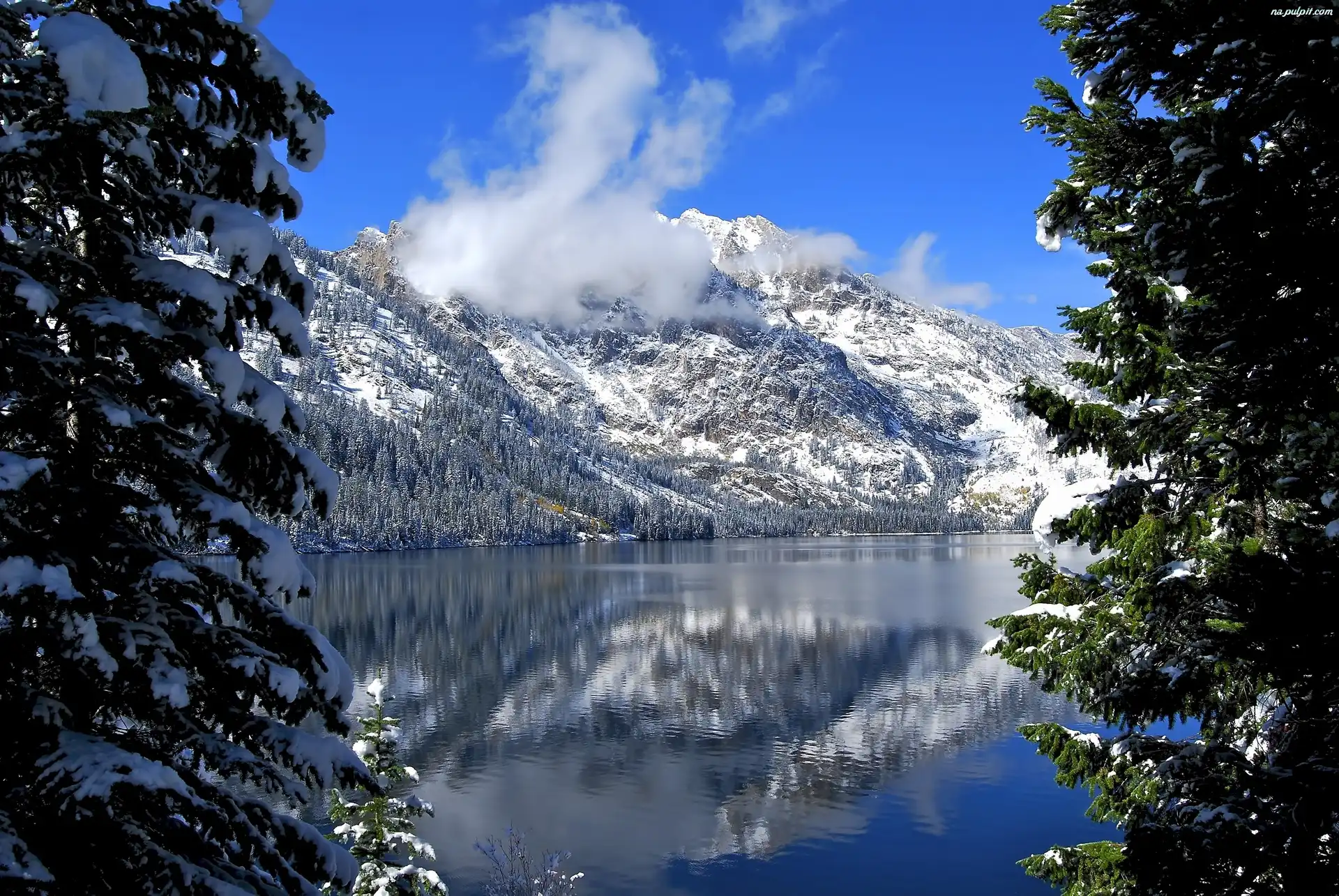 Jezioro, Góry, Zima, Lasy Na Pulpit