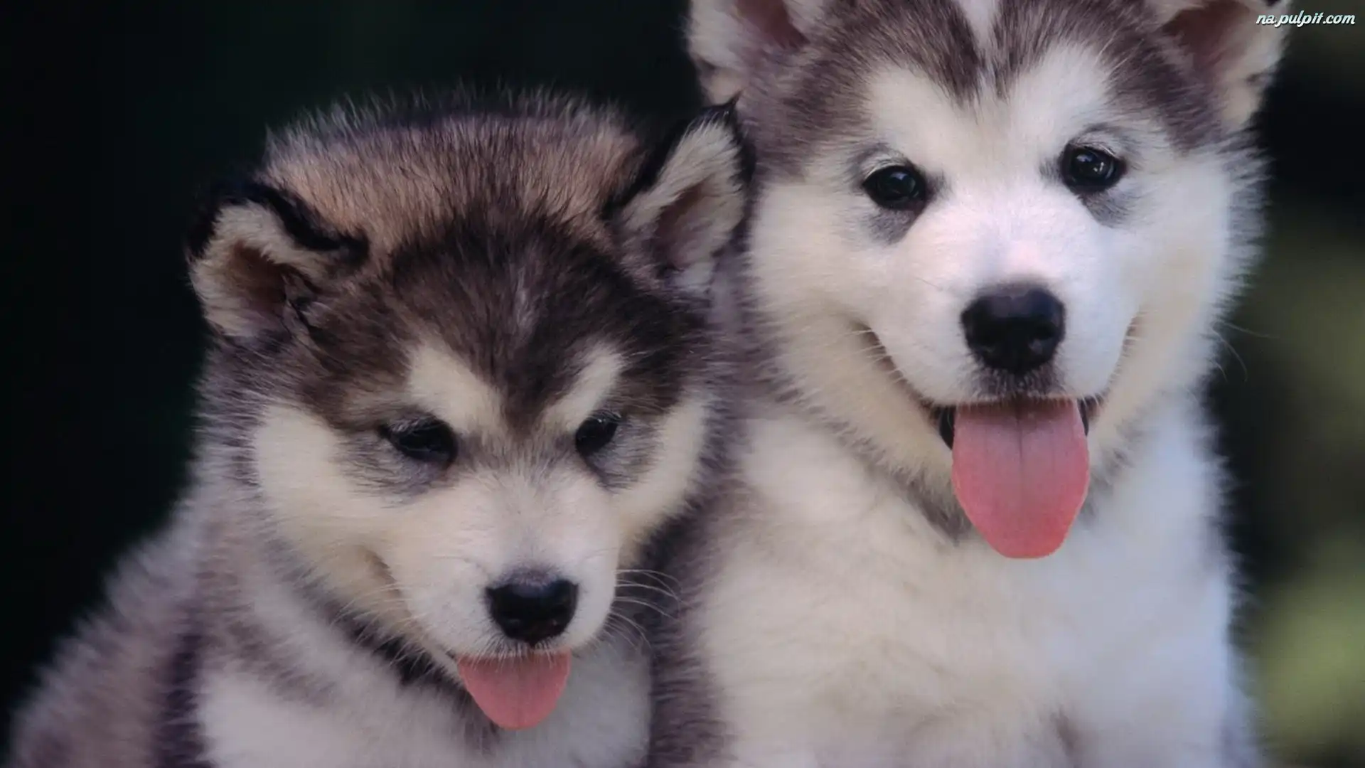Języczki, Siberian, Małe, Dwa, Husky Na Pulpit