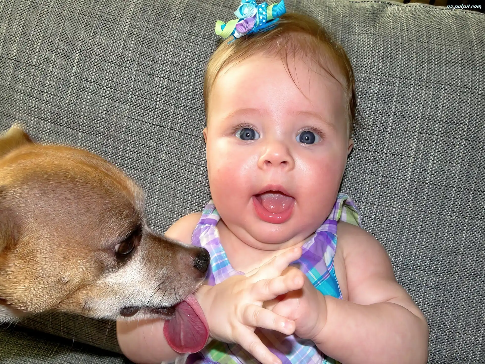 Język, Piesek, Dziewczynka, Malutka, Głowa Na Pulpit