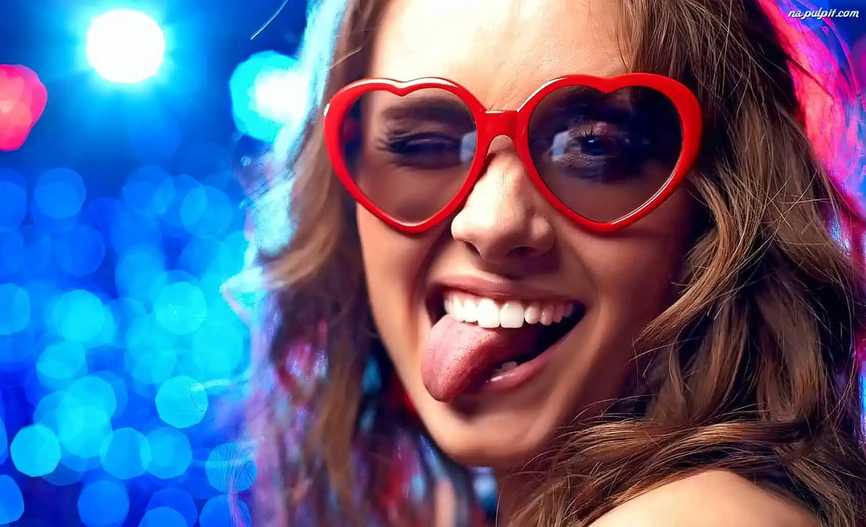 Język, Dziewczyna, Uśmiechnięta, Okulary