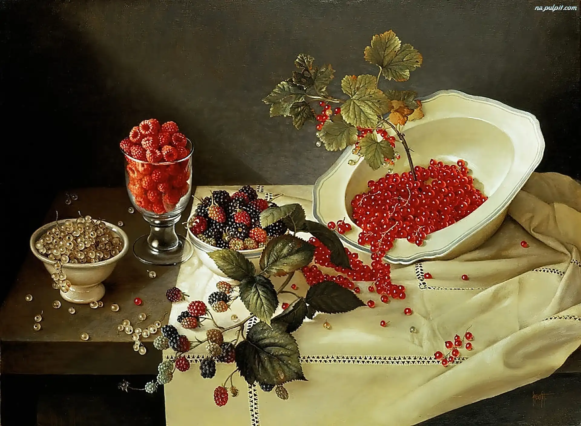 Jeżyny, Porzeczki, Serweta, Stół, Maliny