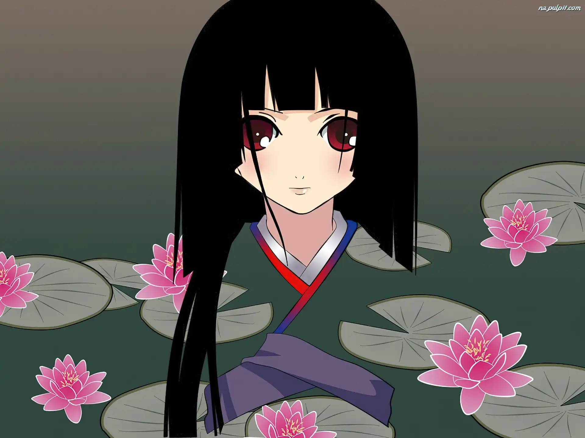 lilia, kobieta, twarz, Jigoku Shoujo znaki, świece, Jigoku Shoujo, kobieta uniform, Jigoku, Shoujo kobieta, kimono, Jigoku Shoujo, kwiaty kwiaty, Jigoku Shoujo, kobieta kimono, Jigoku Shoujo, kobieta chusta, oczy, Jigoku Shoujo, kobieta