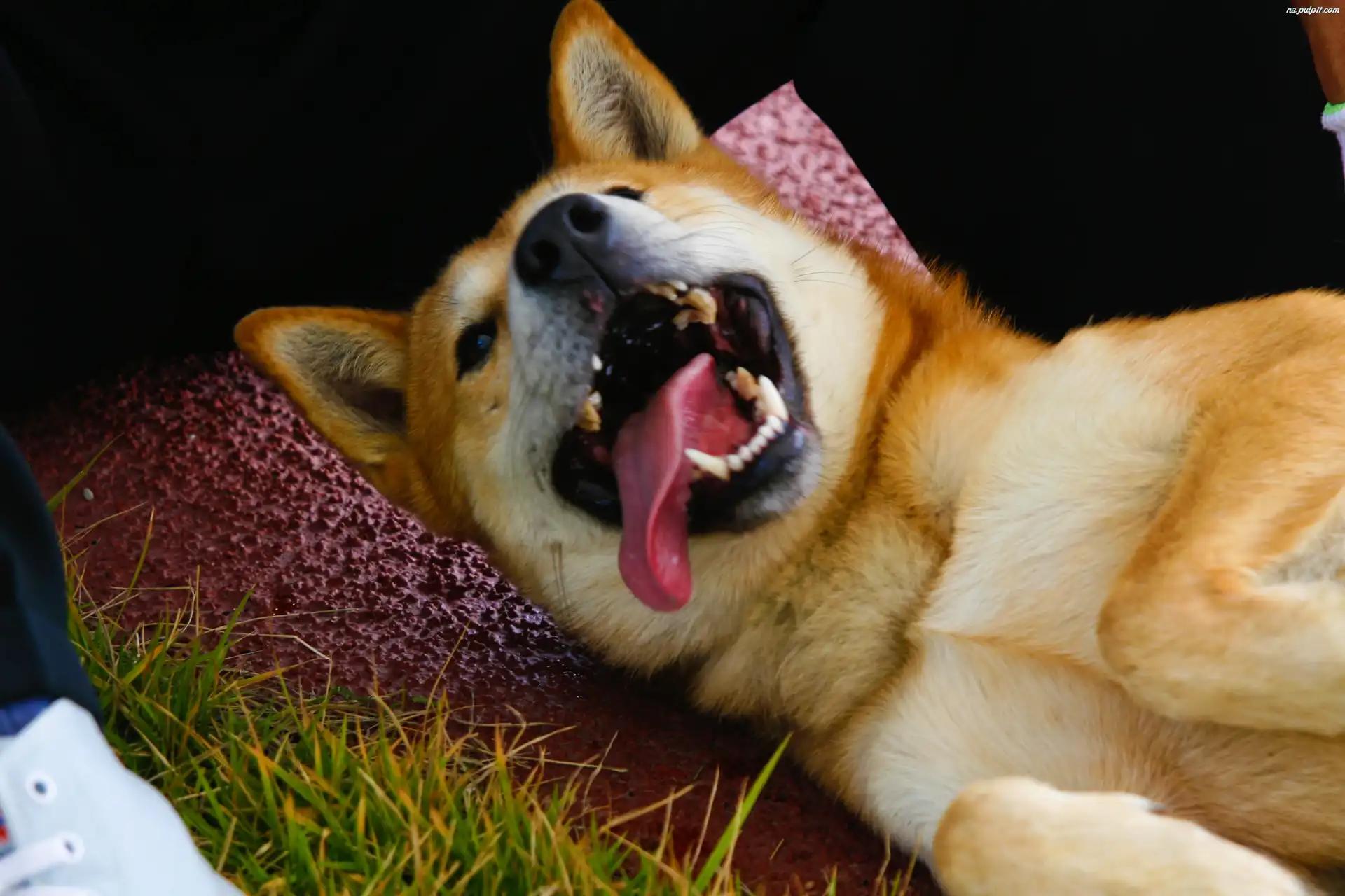 Jindo, język, pysk, kły Na Pulpit