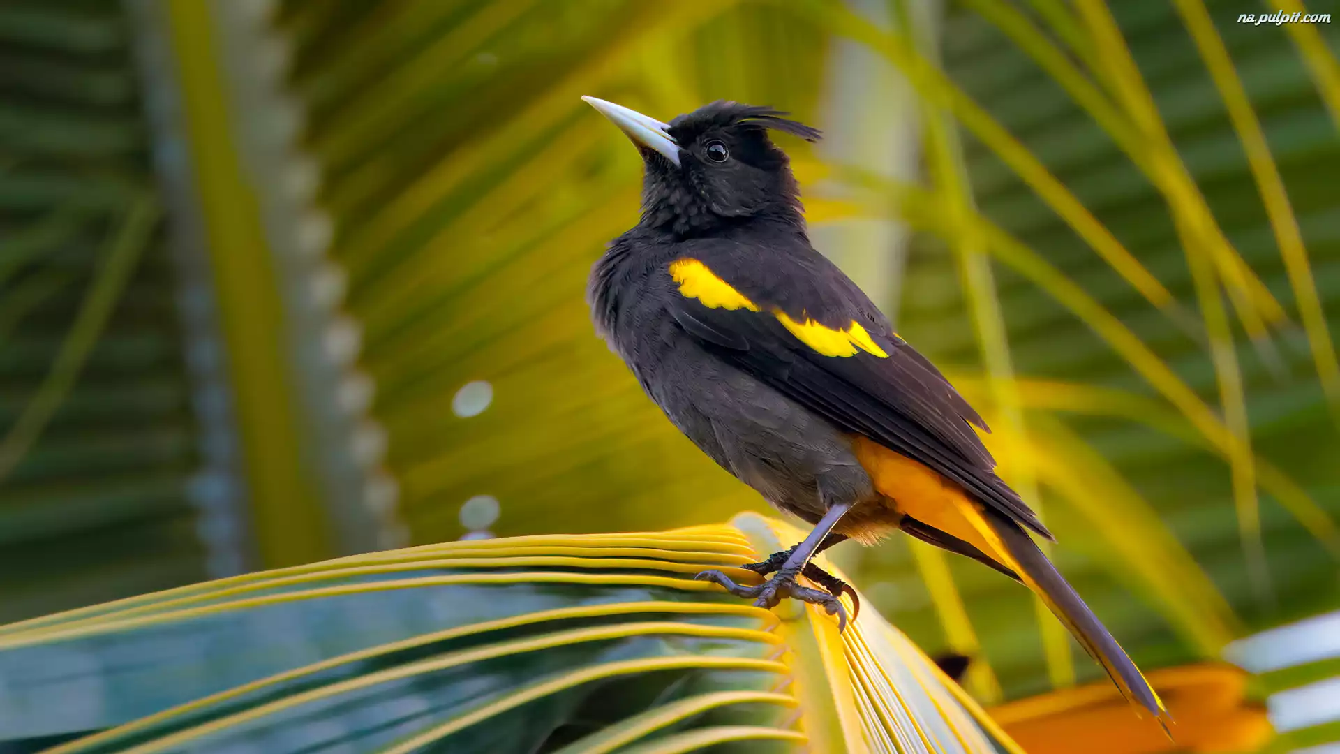 Czarno-żółty, Ptak, Kacyk meksykański, Liść Na Pulpit
