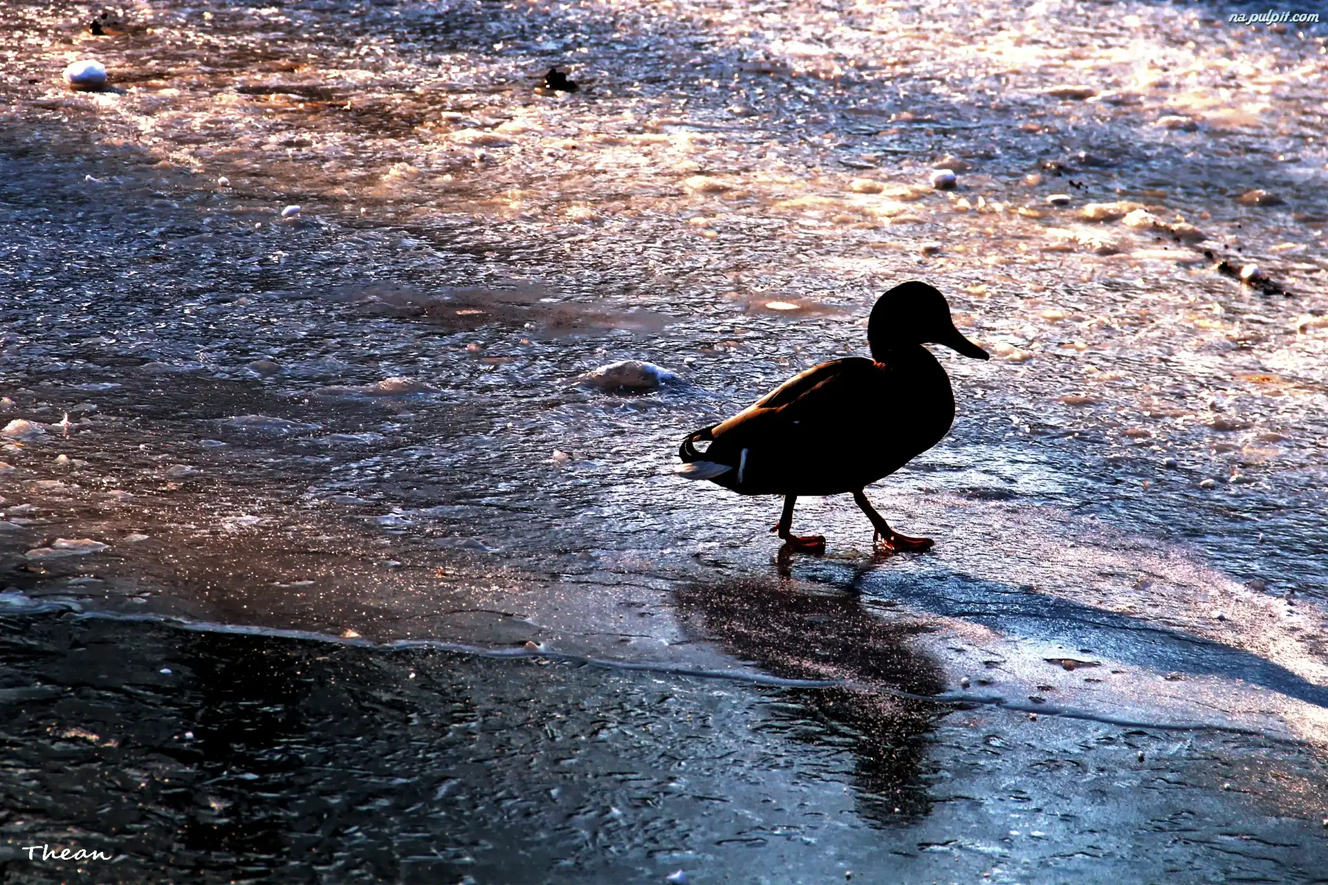 Jezioro, Kaczka, Zamarznięte Na Pulpit