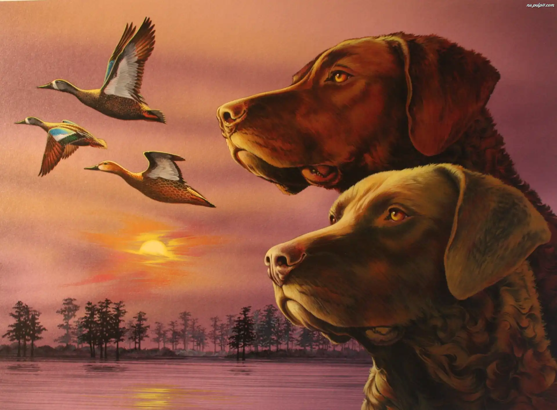 kaczki, Dwa, Chesapeake Bay retrievery Na Pulpit