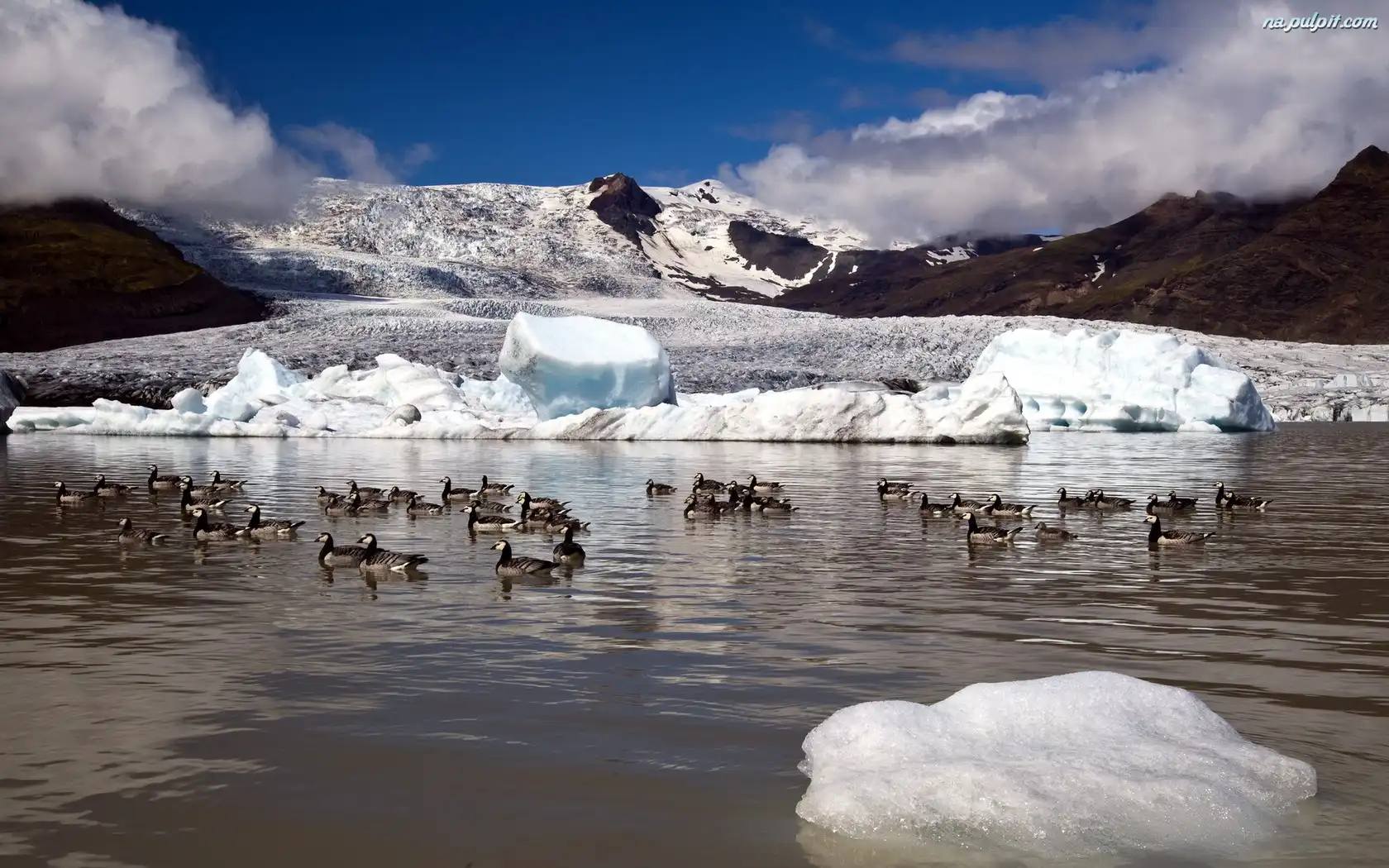 Kaczki, Jezioro, Góry, Lód Na Pulpit