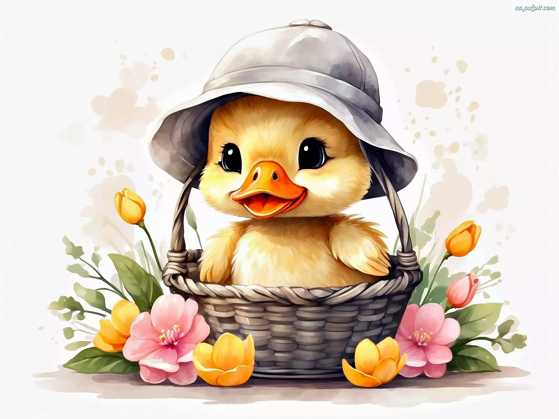 Kwiaty, Kaczuszka, Czapka, Grafika, Koszyk Na Pulpit
