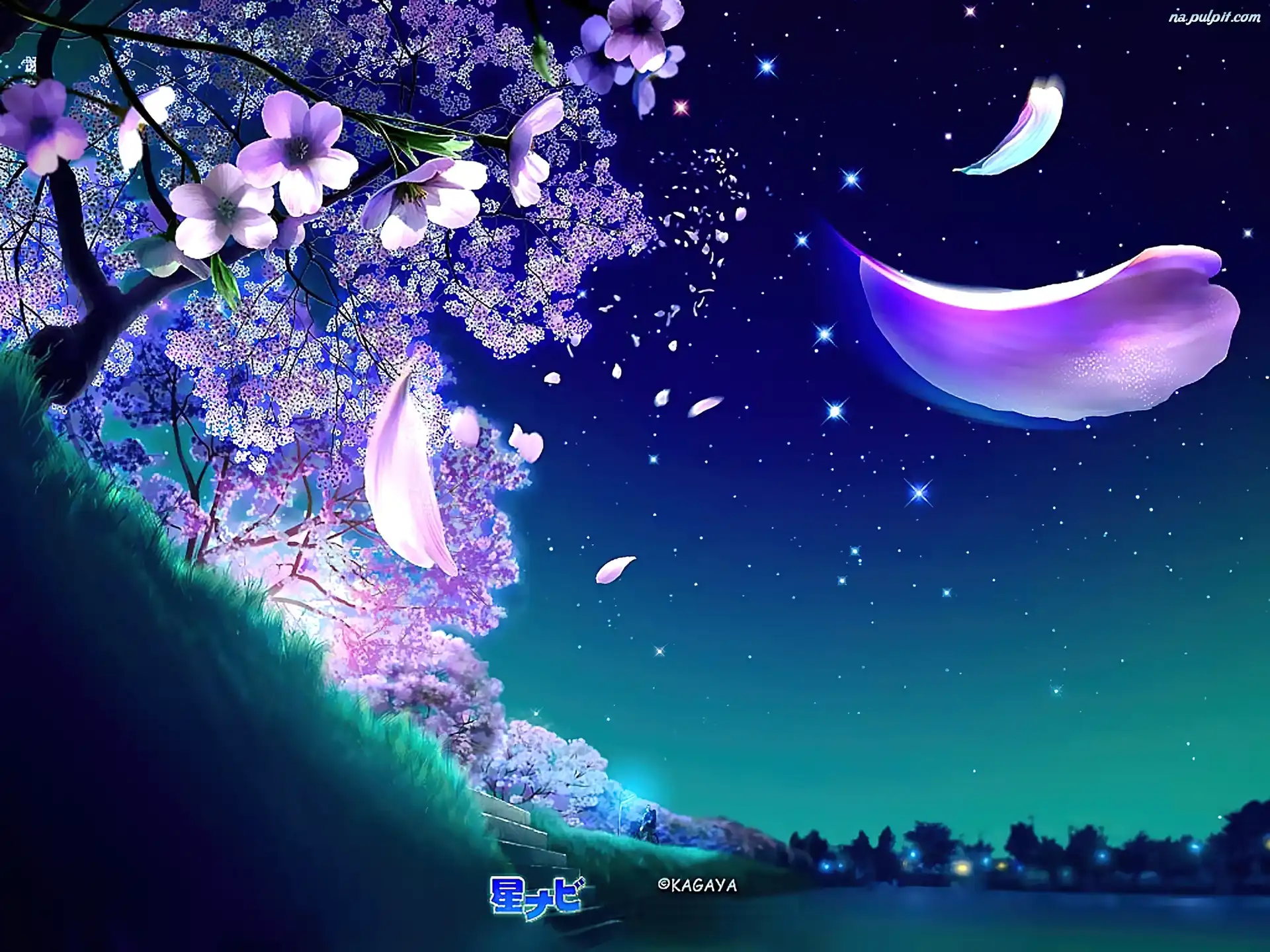 Kagaya, Opadający, Płatek , Drzewo, Grafika, Kwiaty Na Pulpit