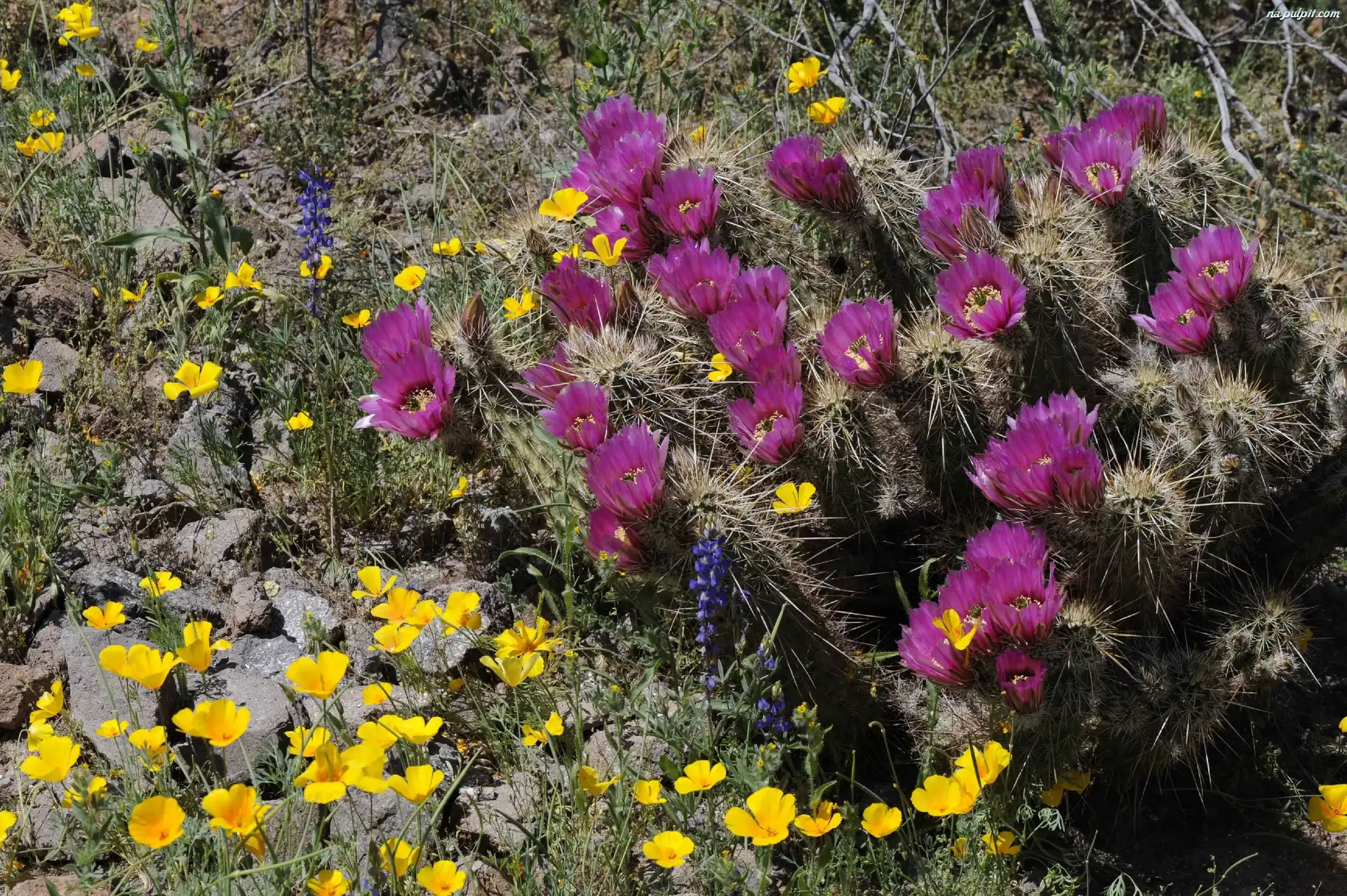 Kaktusy, Maki, Żółte, Kwitnące Na Pulpit