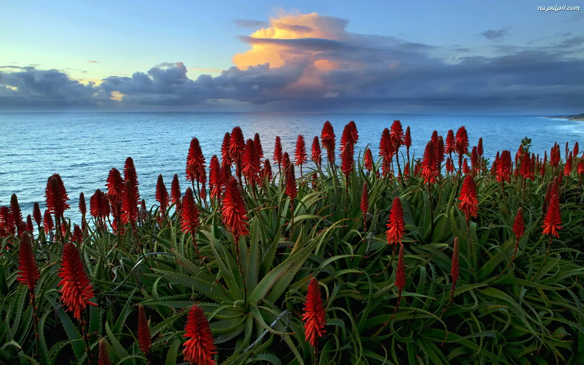 Kaktusy, Słońca, Zachód, Morze Na Pulpit