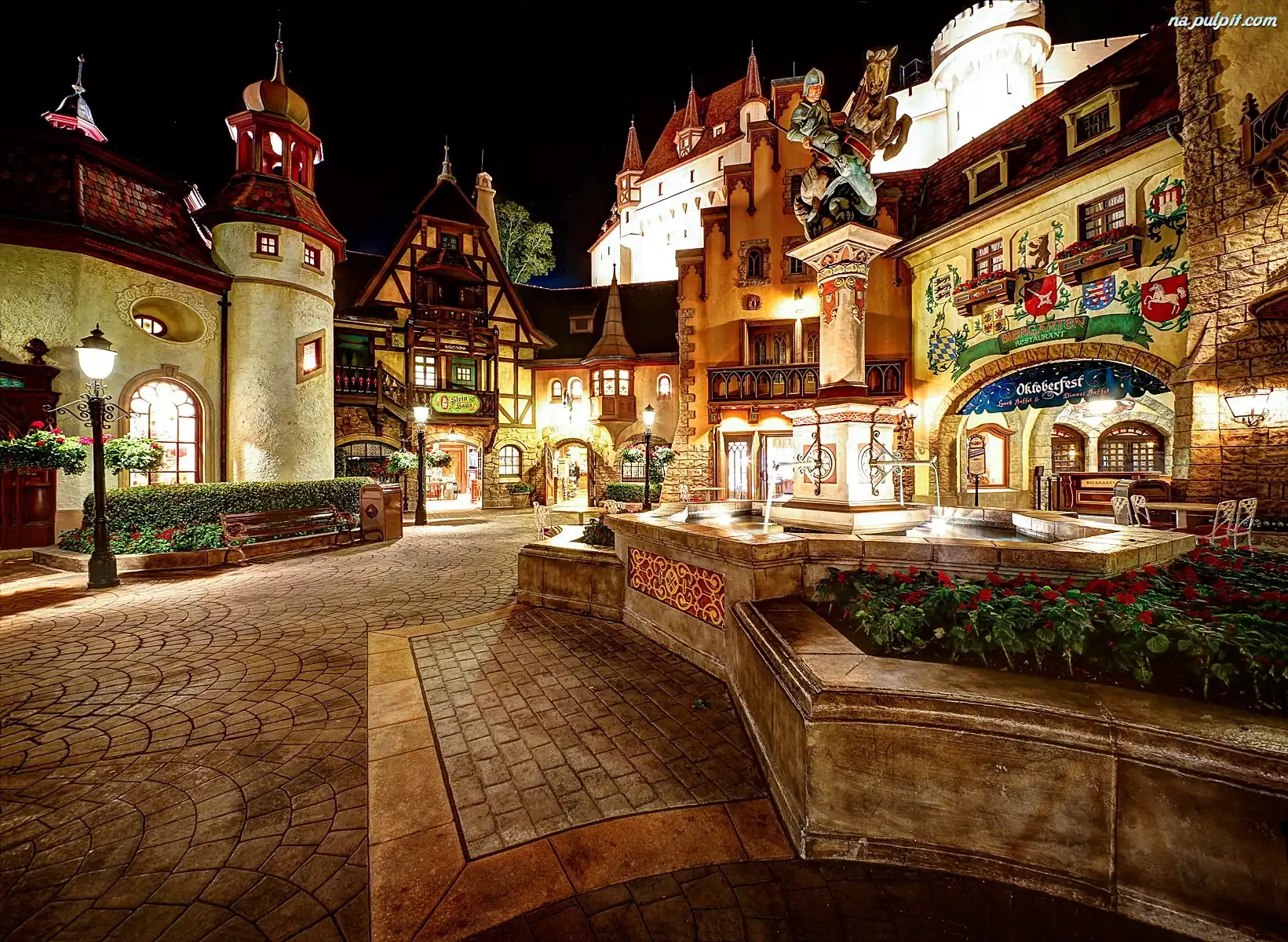 Kalifornia, Noc, Domy, Miasto, Disneyland