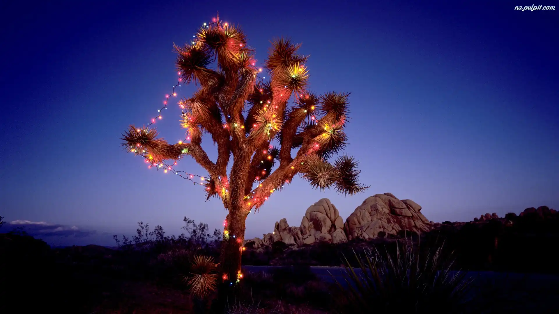 Kalifornia, Drzewo Jozuego, Oświetlone, Park Narodowy Na Pulpit