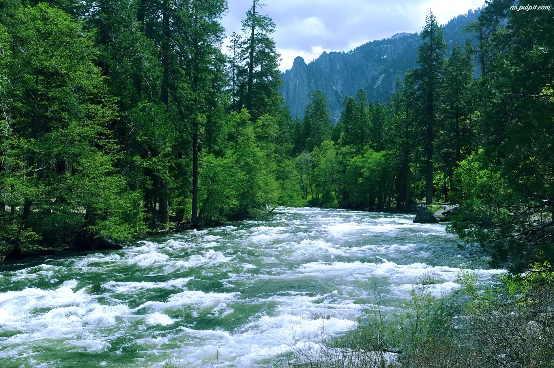 Stan Kalifornia, Las, Góry, Park Narodowy Yosemite, Stany Zjednoczone, Rzeka Na Pulpit