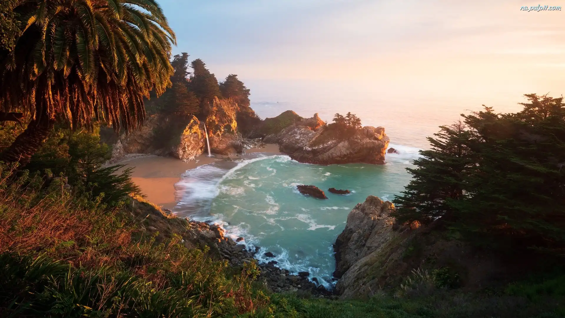 Wybrzeże, Morze, Big Sur, Stany Zjednoczone, Drzewa, Skały, Kalifornia, Park Stanowy Julia Pfeiffer Burns Na Pulpit |