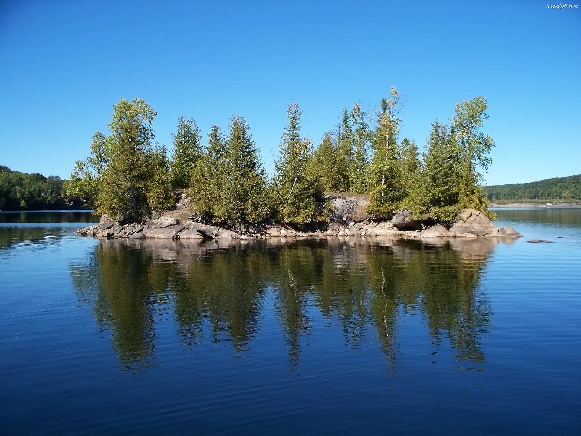 Kalifornia, Jezioro, Drzewa, Wysepka, Loon