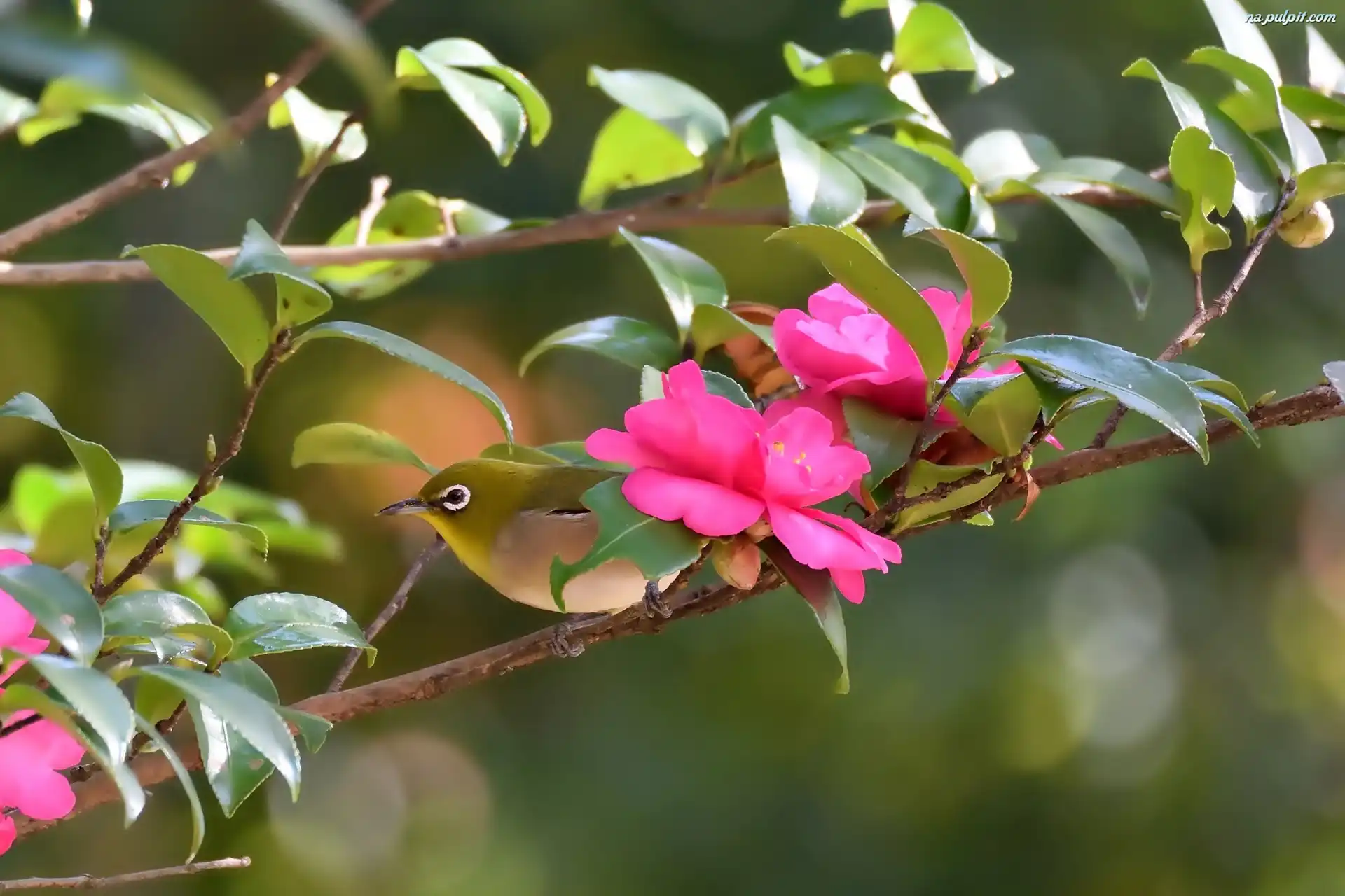Kamelia, Japoński, Ptak, Białe Oko Na Pulpit