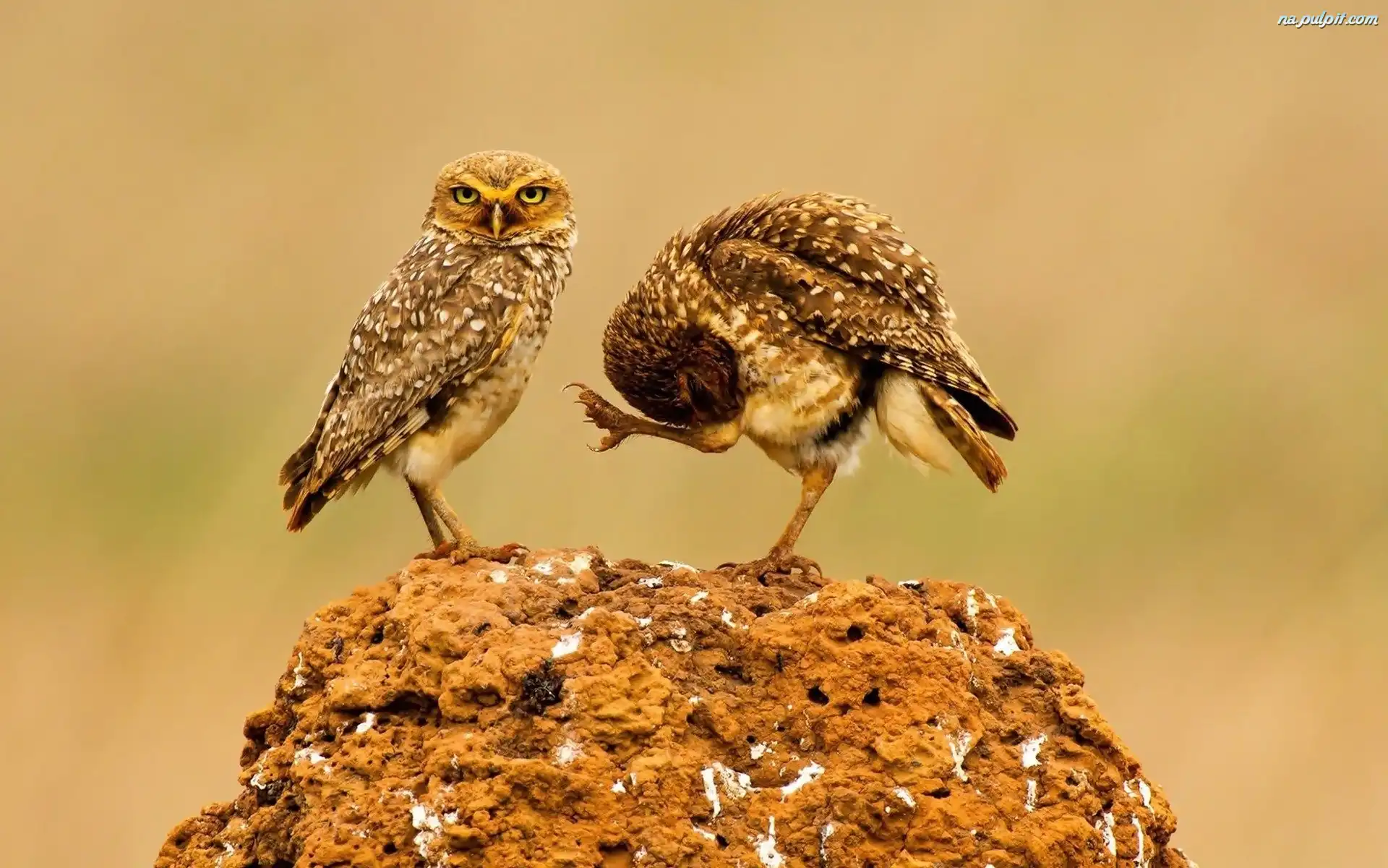 Kamień, Sówki, Dwie, Ziemne Na Pulpit