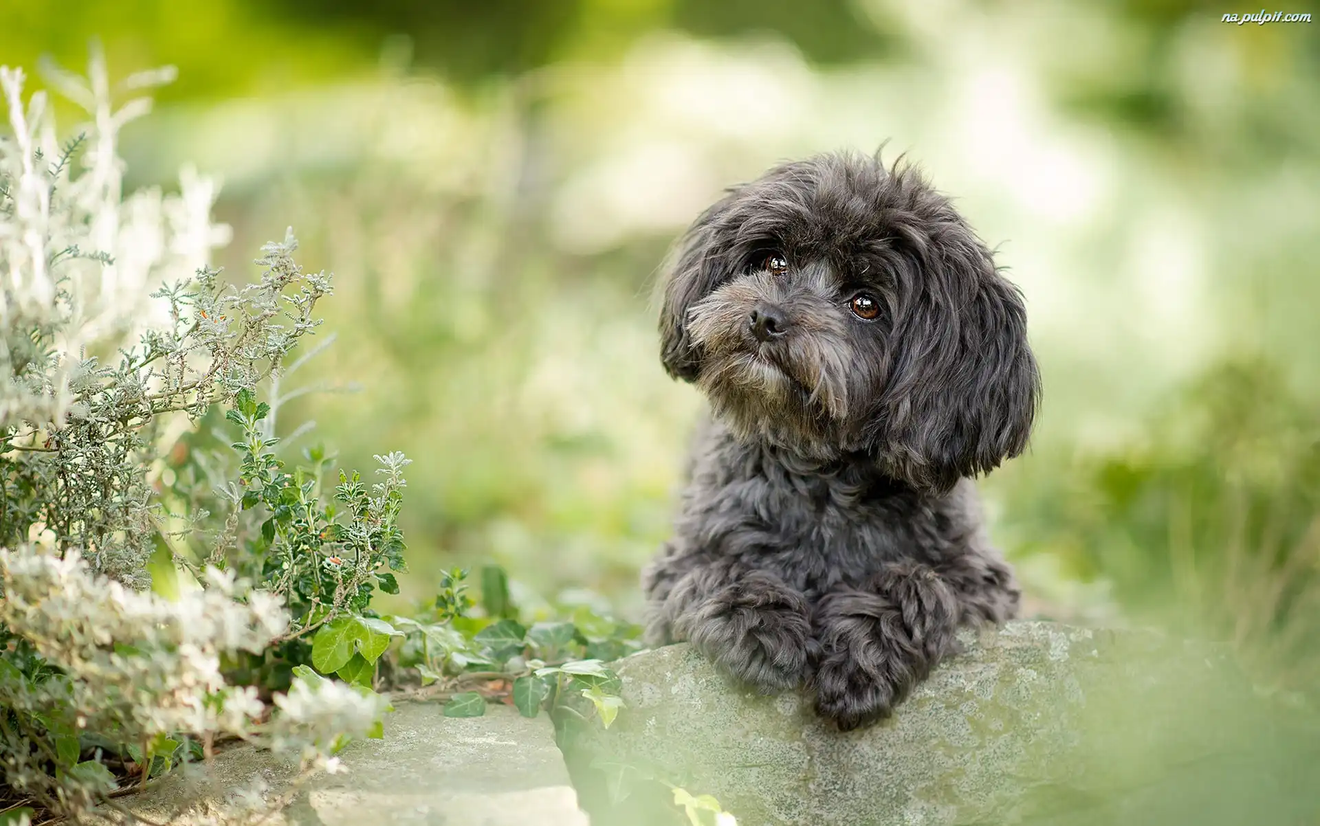 Kamień, Pudel toy, Pies, Rośliny Na Pulpit