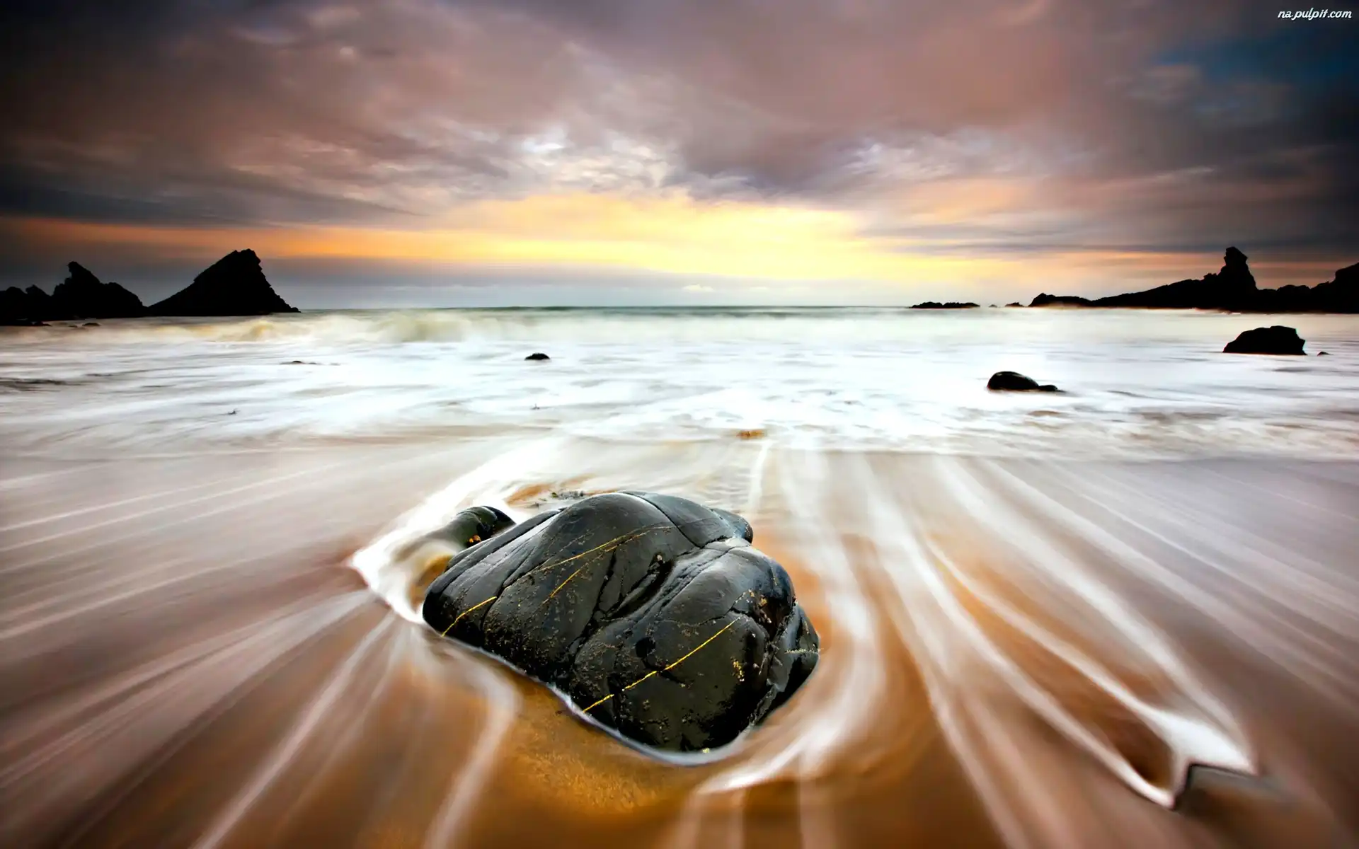 Kamień, Morze, Słońca, Zachód, Skały Na Pulpit