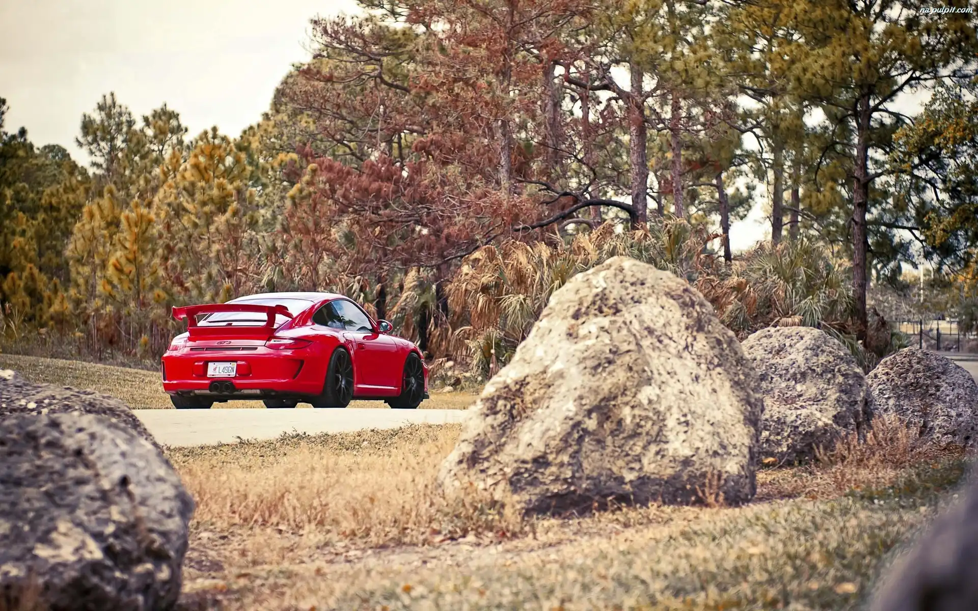 Kamienie, 911, Porsche, Czerwone, Drzewa Na Pulpit