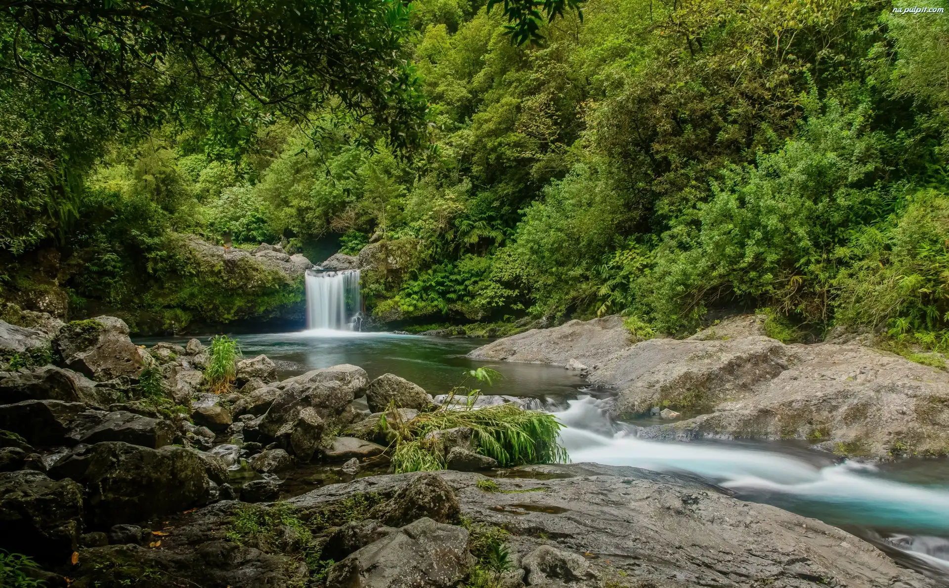 Kamienie, Wodospad, Las, Drzewa, Rzeka Na Pulpit