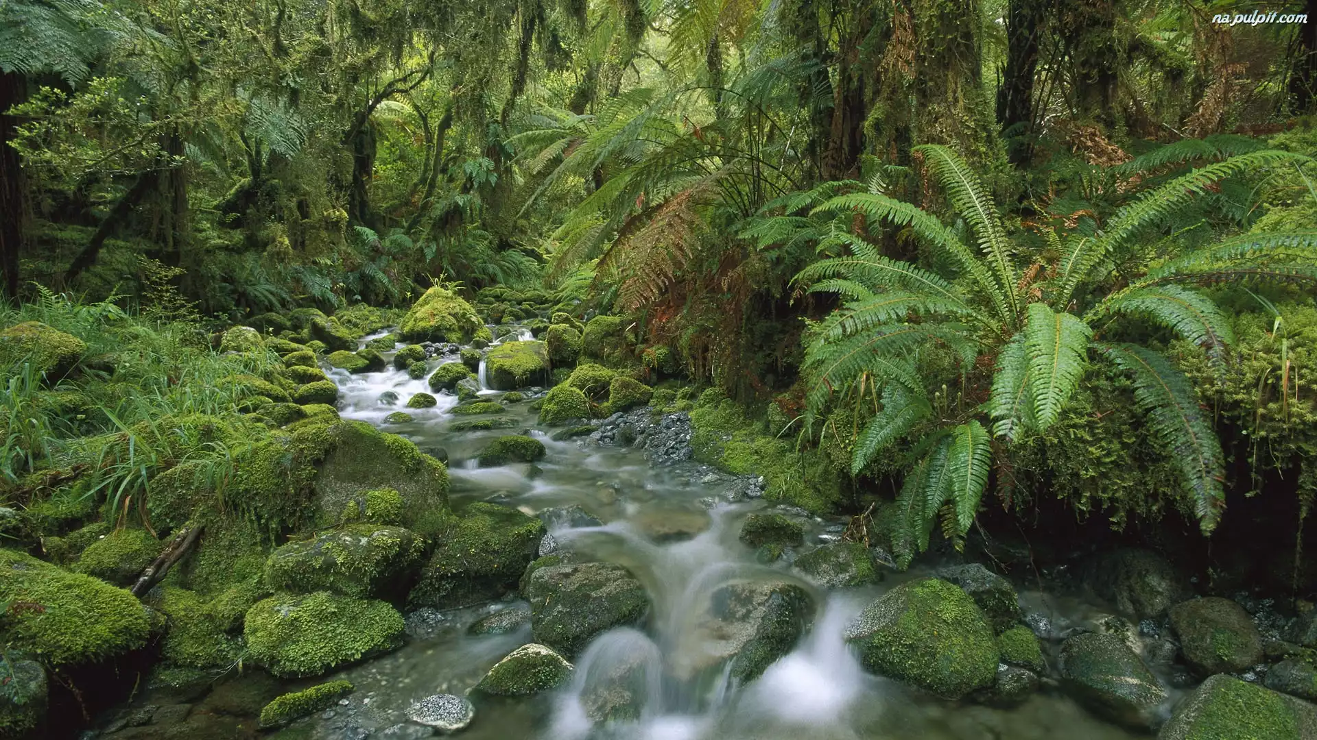 Kamienie, Paprocie, Drzewa, Strumyk Na Pulpit