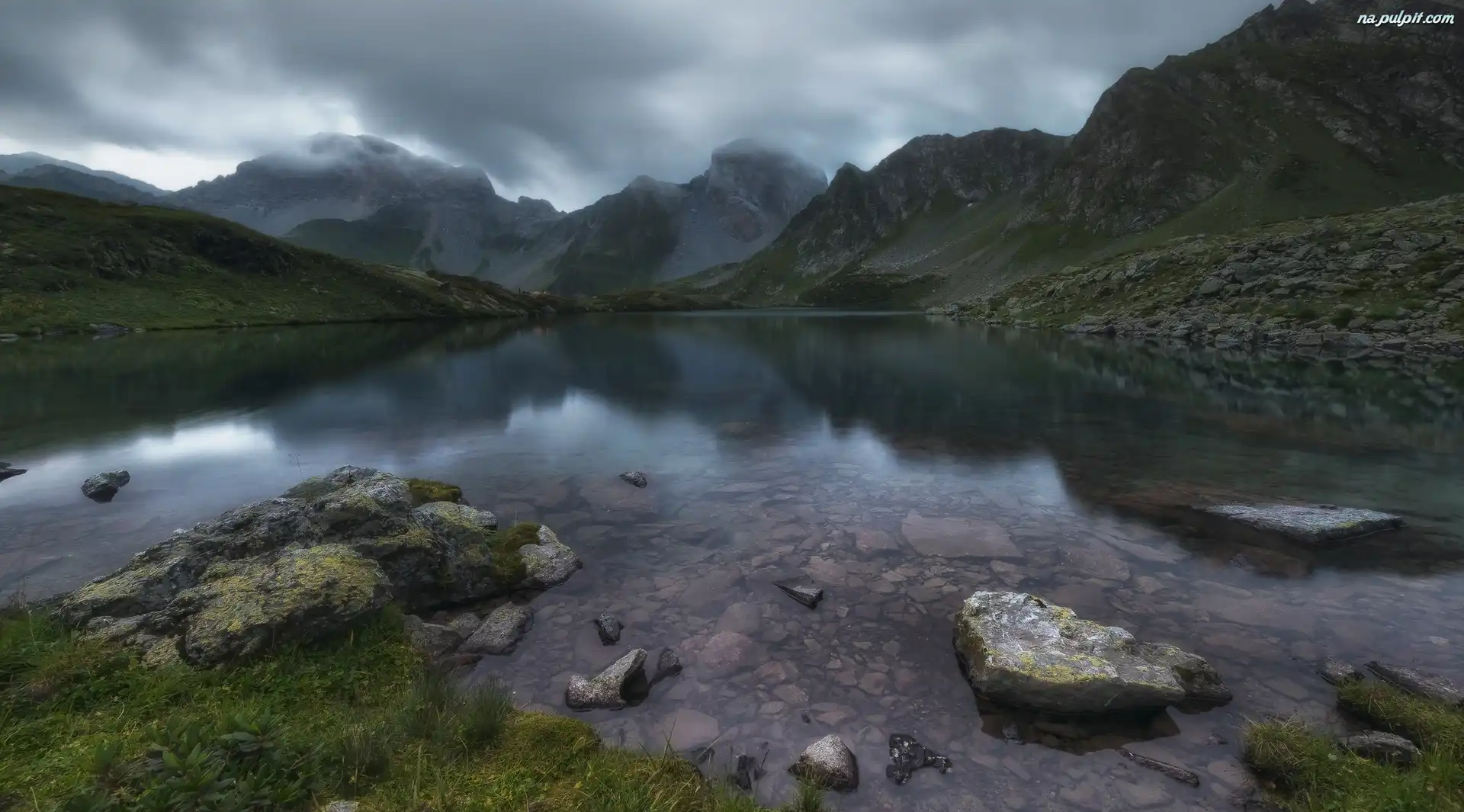 Kamienie, Jezioro, Góry, Mgła Na Pulpit