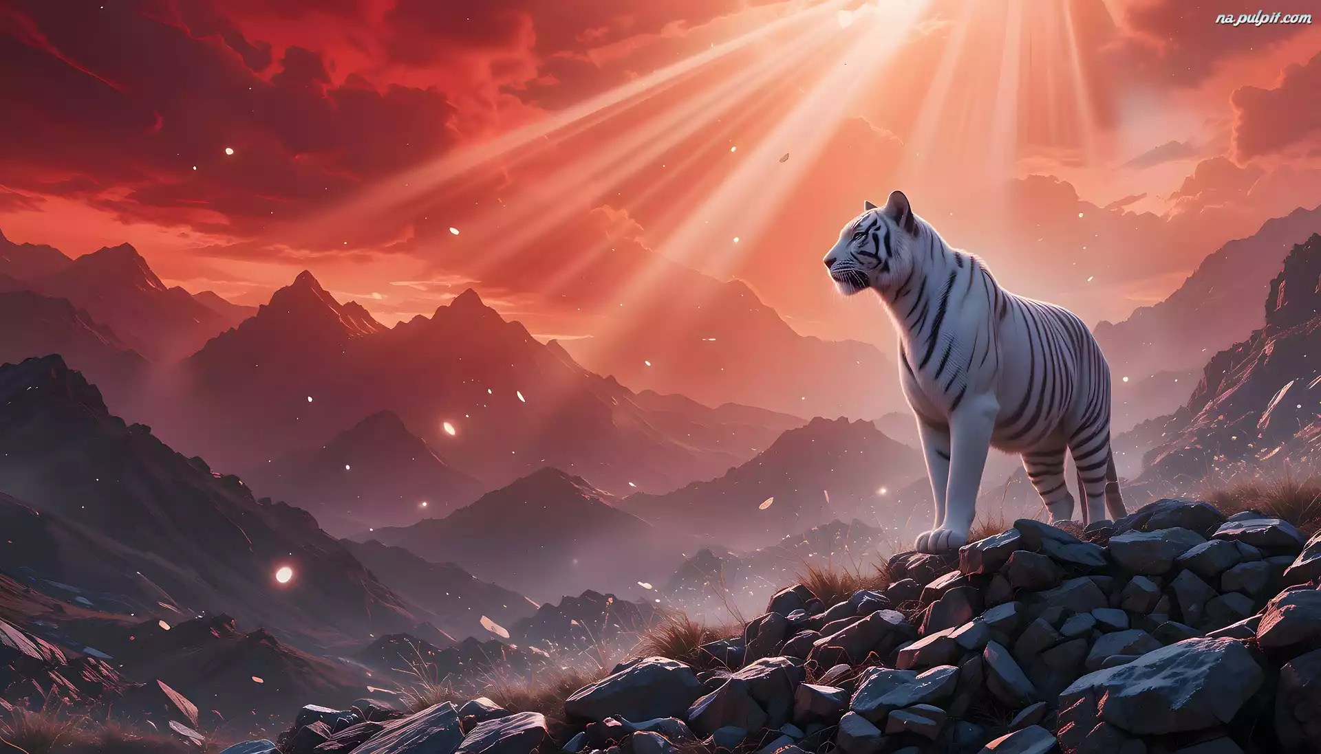 Promienie słońca, Tygrys, Kamienie, Grafika, Góry Na Pulpit