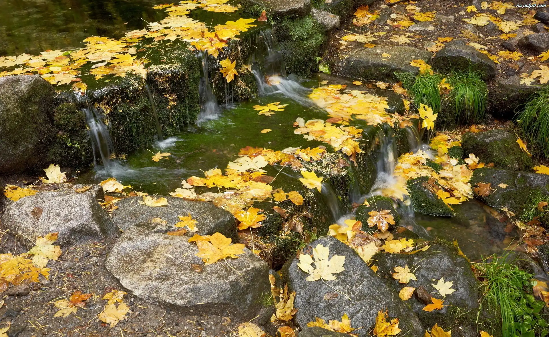 Kamienie, Kaskada, Jesień, Liście Na Pulpit