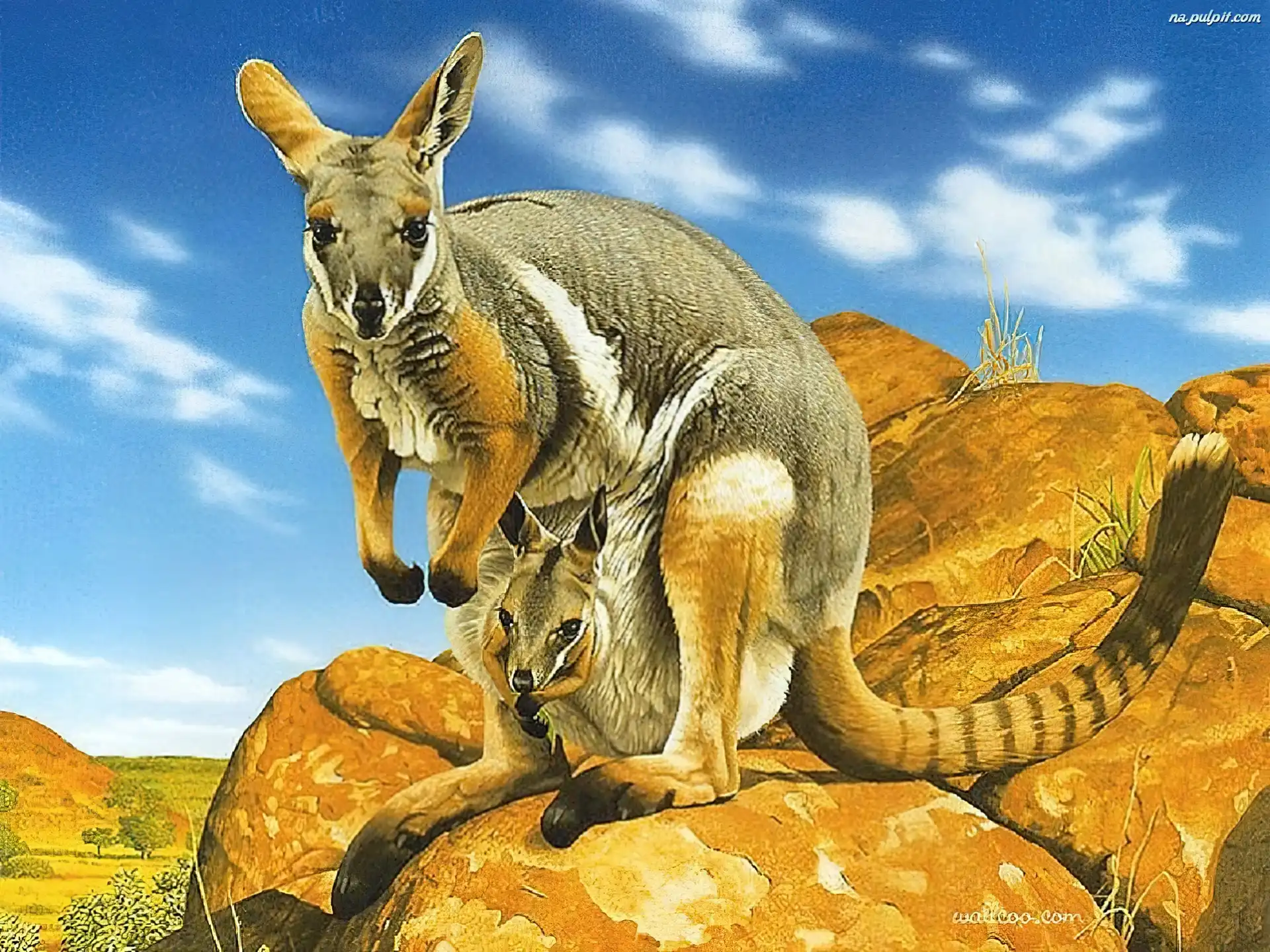 Kamienie, W, Mały, Kangur, Torbie Na Pulpit