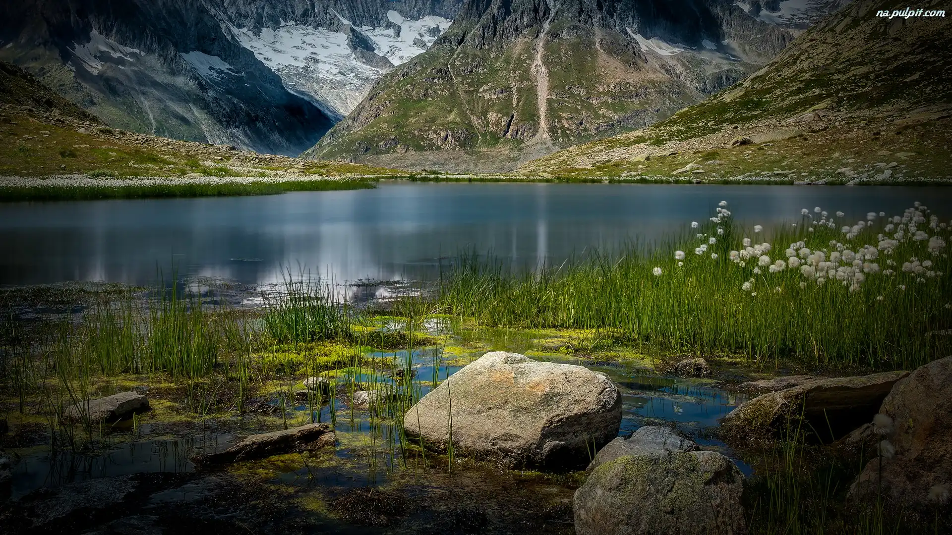 Alpy Berneńskie, Kamienie, Rośliny, Kanton Wallis, Szwajcaria, Trawa, Jezioro Marjelensee, Góry Na Pulpit |