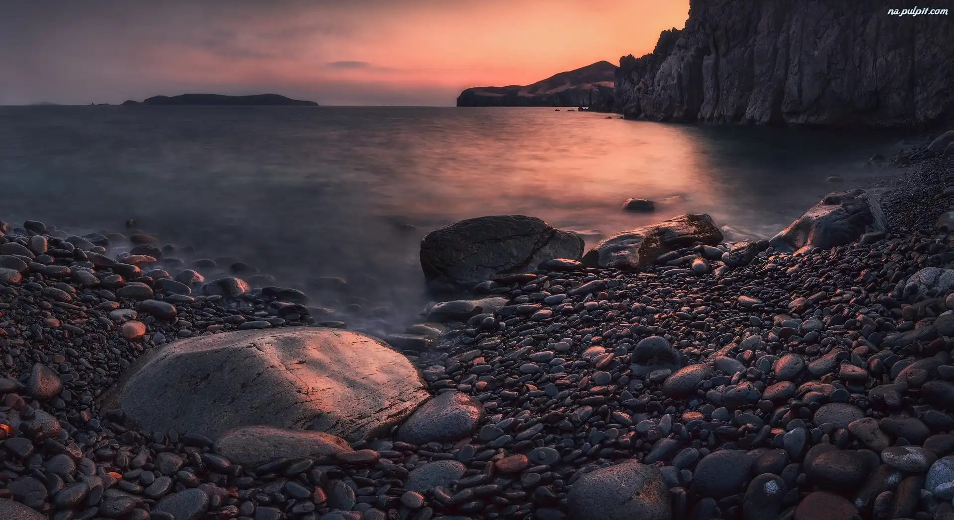 Zachód Słońca, Kraj Nadmorski, Rosja, Skały, Morze Japońskie, Kamienie