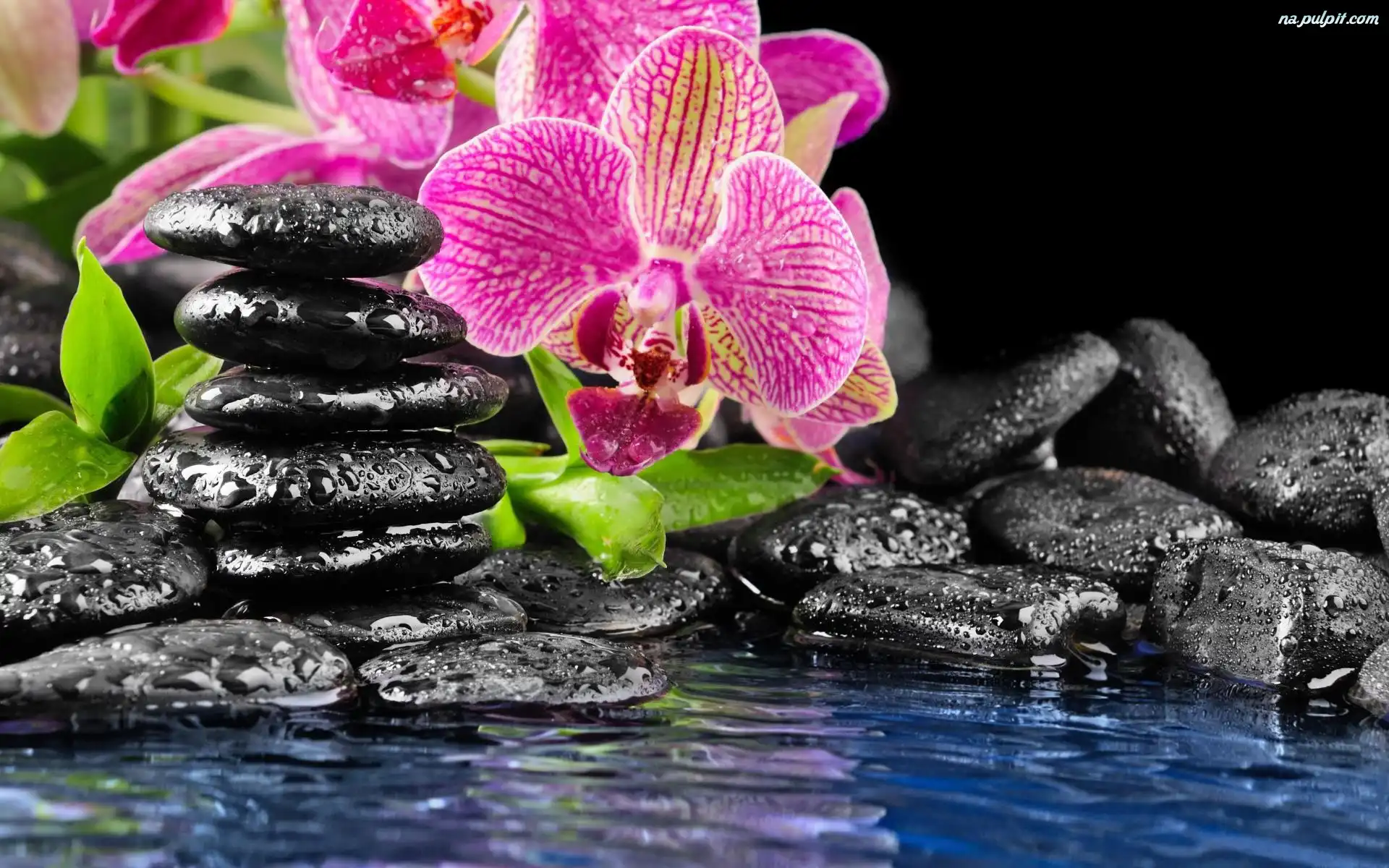 Kamienie, Woda, Kwiaty, Czarne Na Pulpit