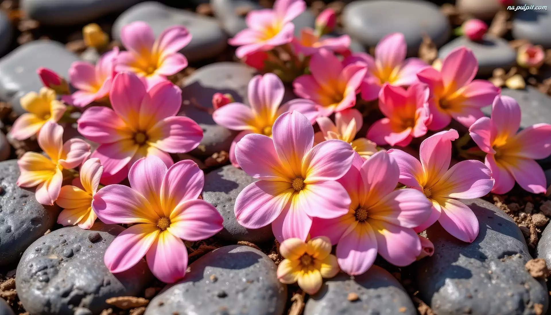 Kwiaty, Różowo-żółte, Kamienie Na Pulpit