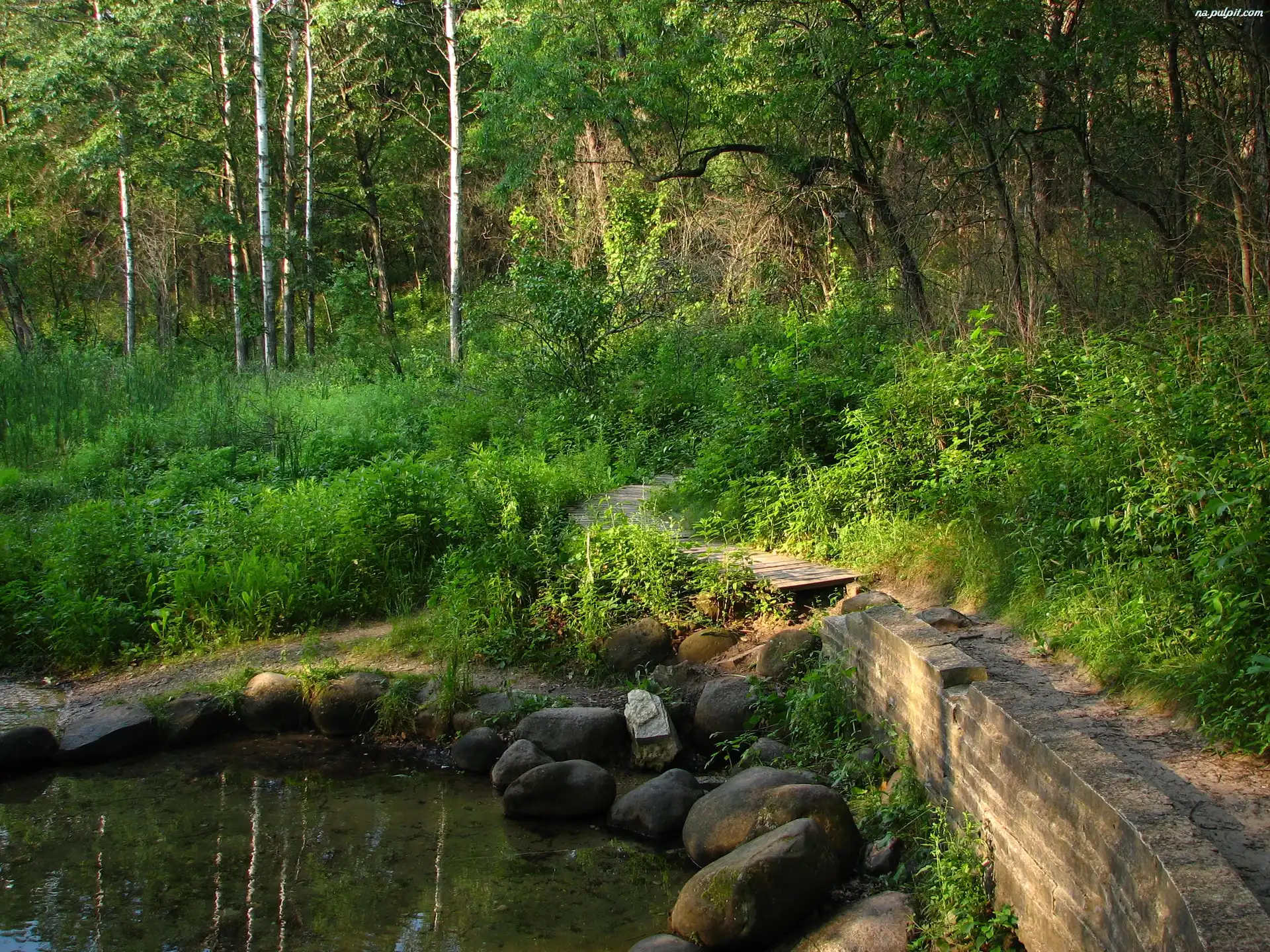 Kamienie, Dróżka, Las, Rzeczka Na Pulpit