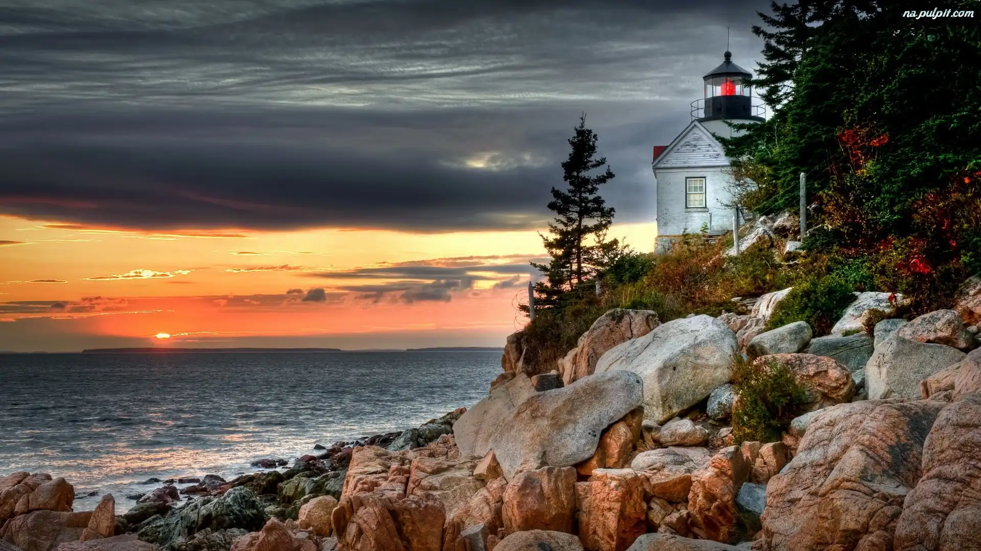 Kamienie, Zachód, Morska, Latarnia, Słońca Na Pulpit