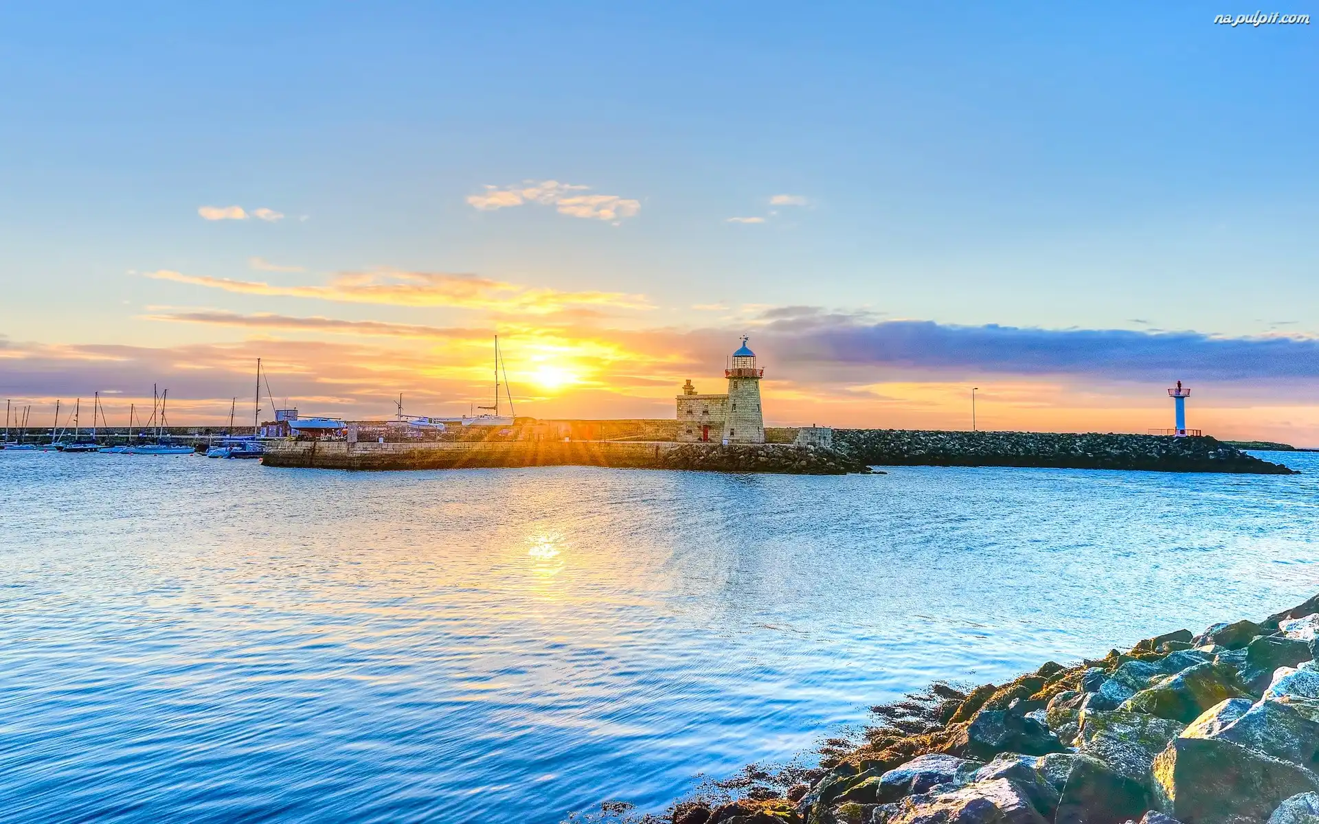 Kamienie, Wschód słońca, Morze, Latarnia morska Na Pulpit