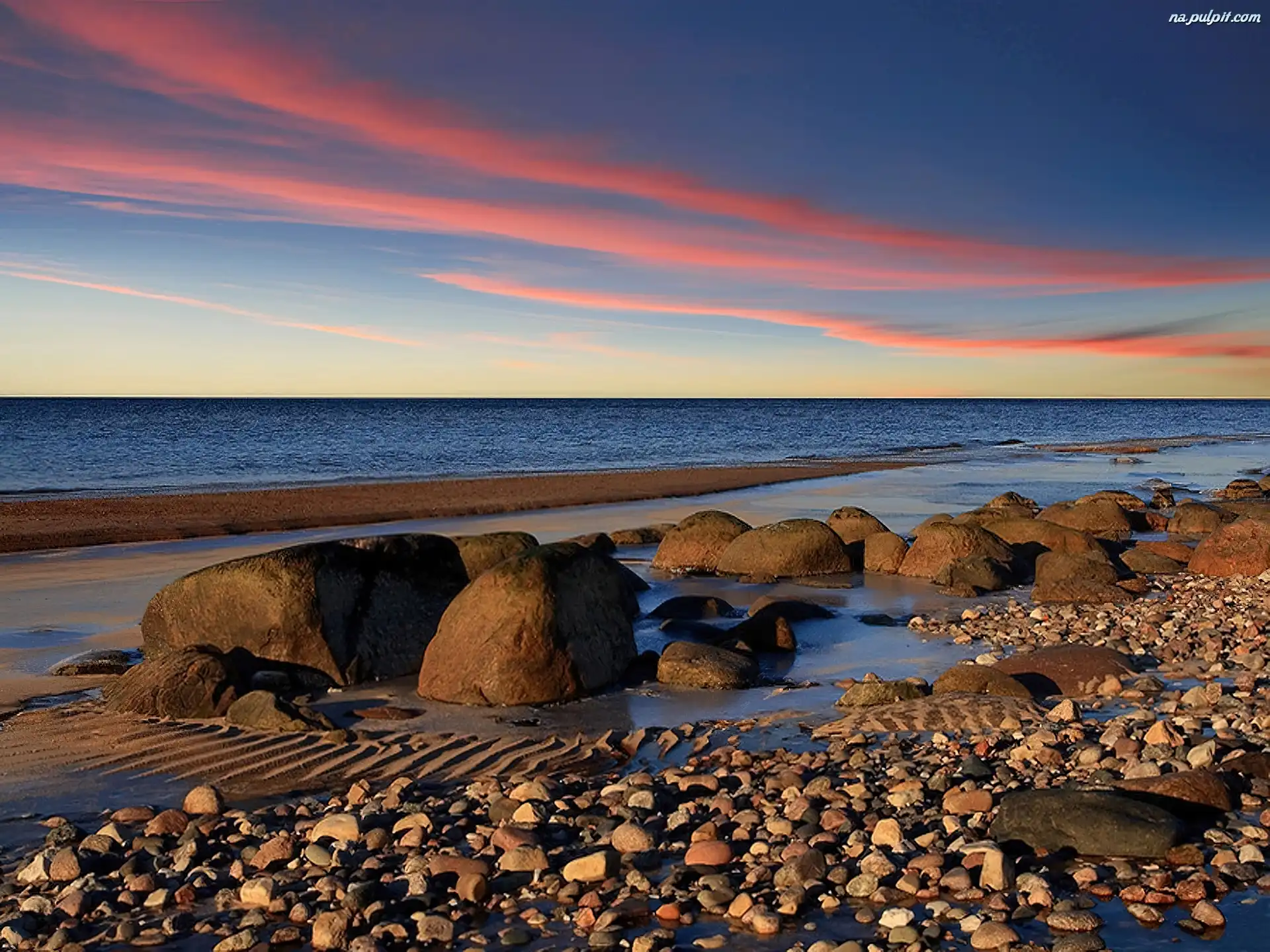 Kamienie, Plaża, Morze, Skały Na Pulpit