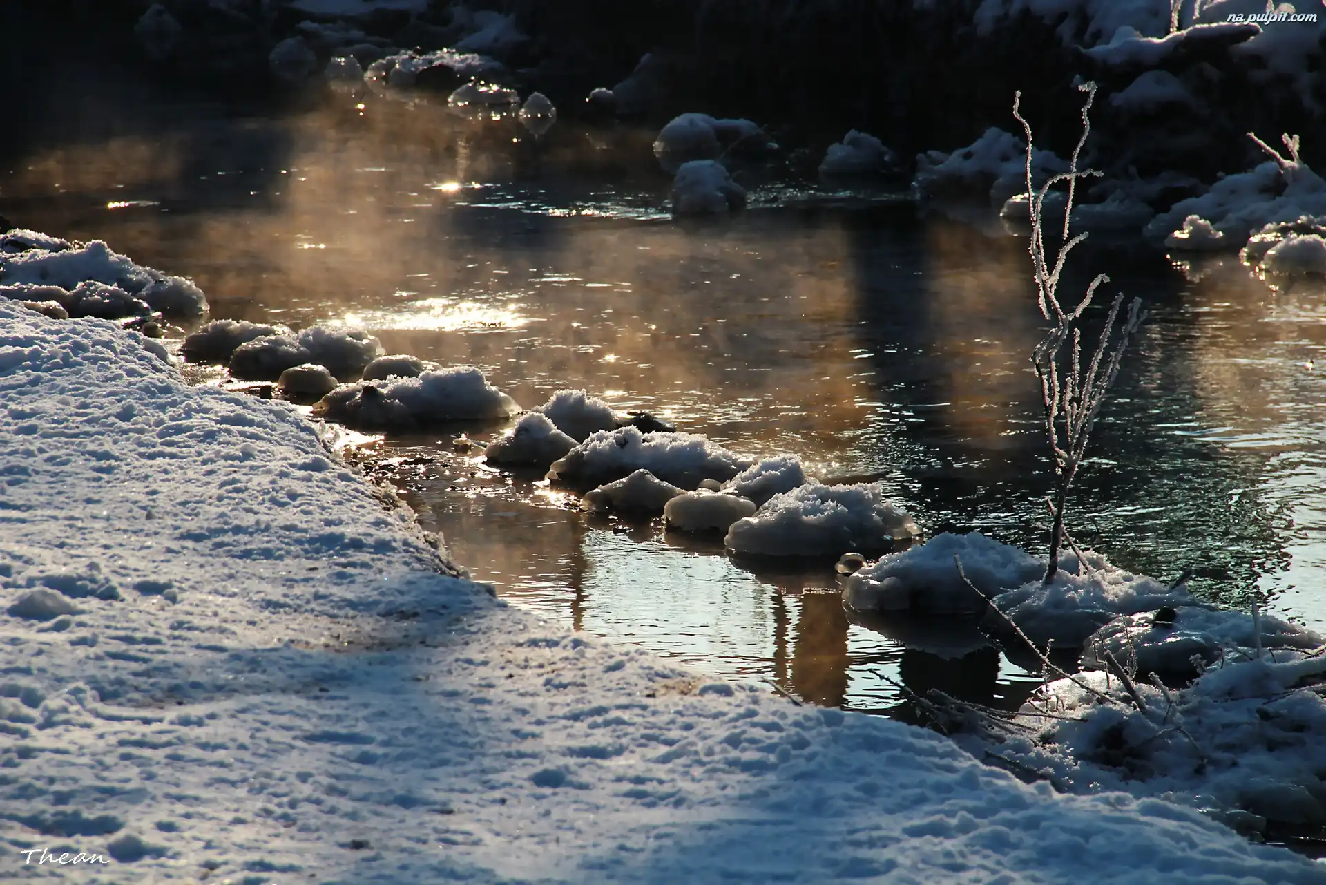 Kamienie, Strumyk, Zima, Åšnieg, Oblodzone Na Pulpit