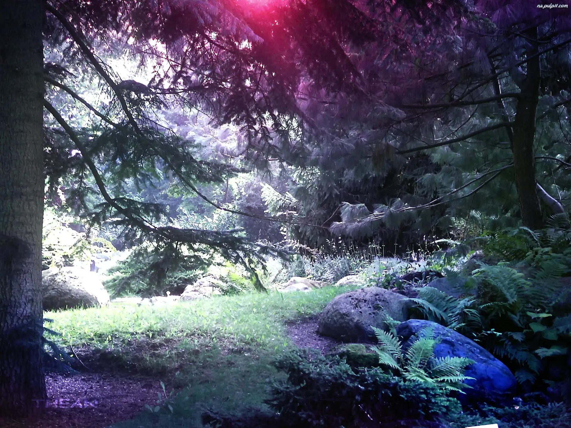 Kamienie, Drzewa, Botaniczny, Ogród, Paprocie Na Pulpit