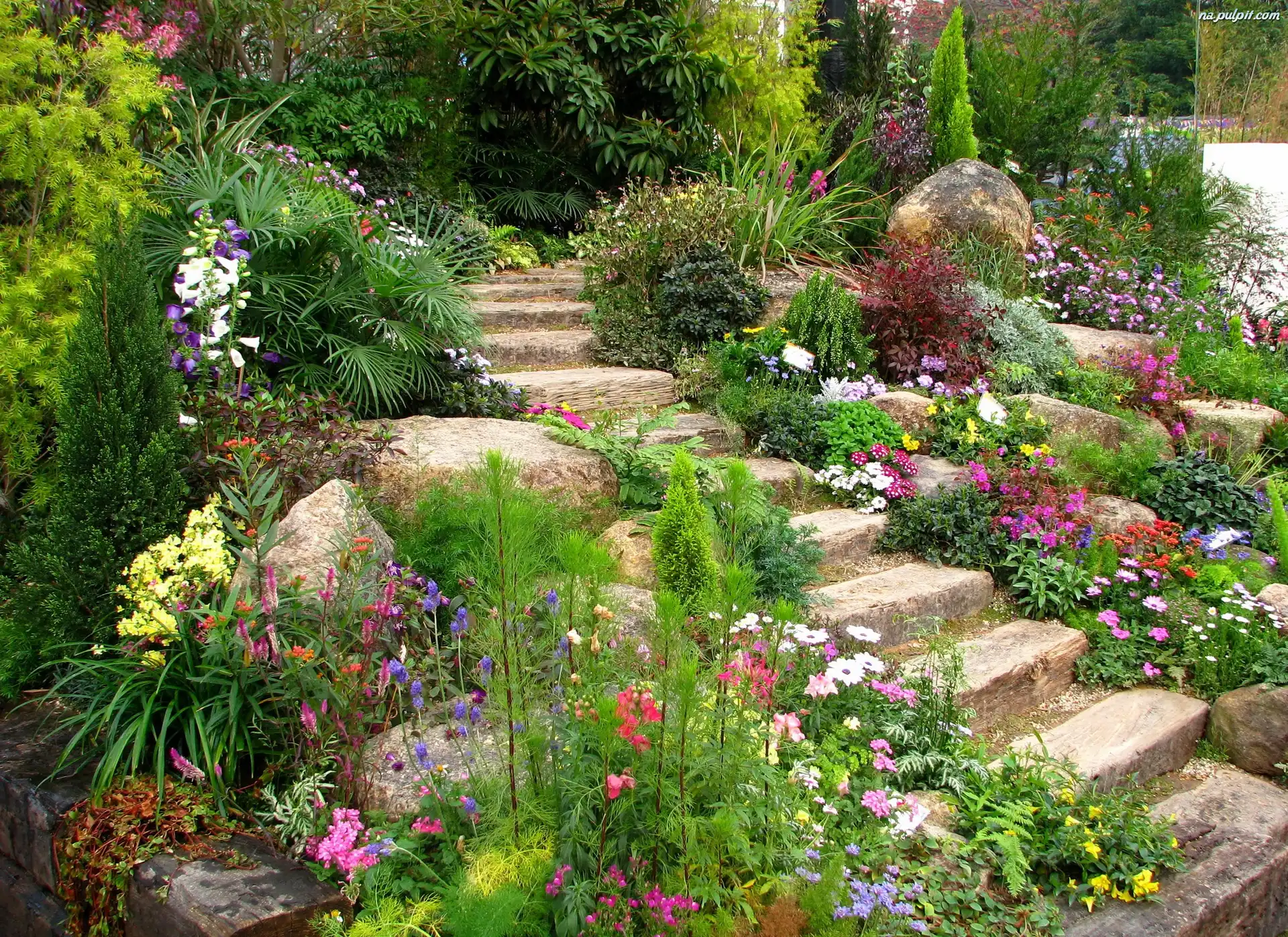 Kamienie, Kwiaty, Ogród, Schody Na Pulpit