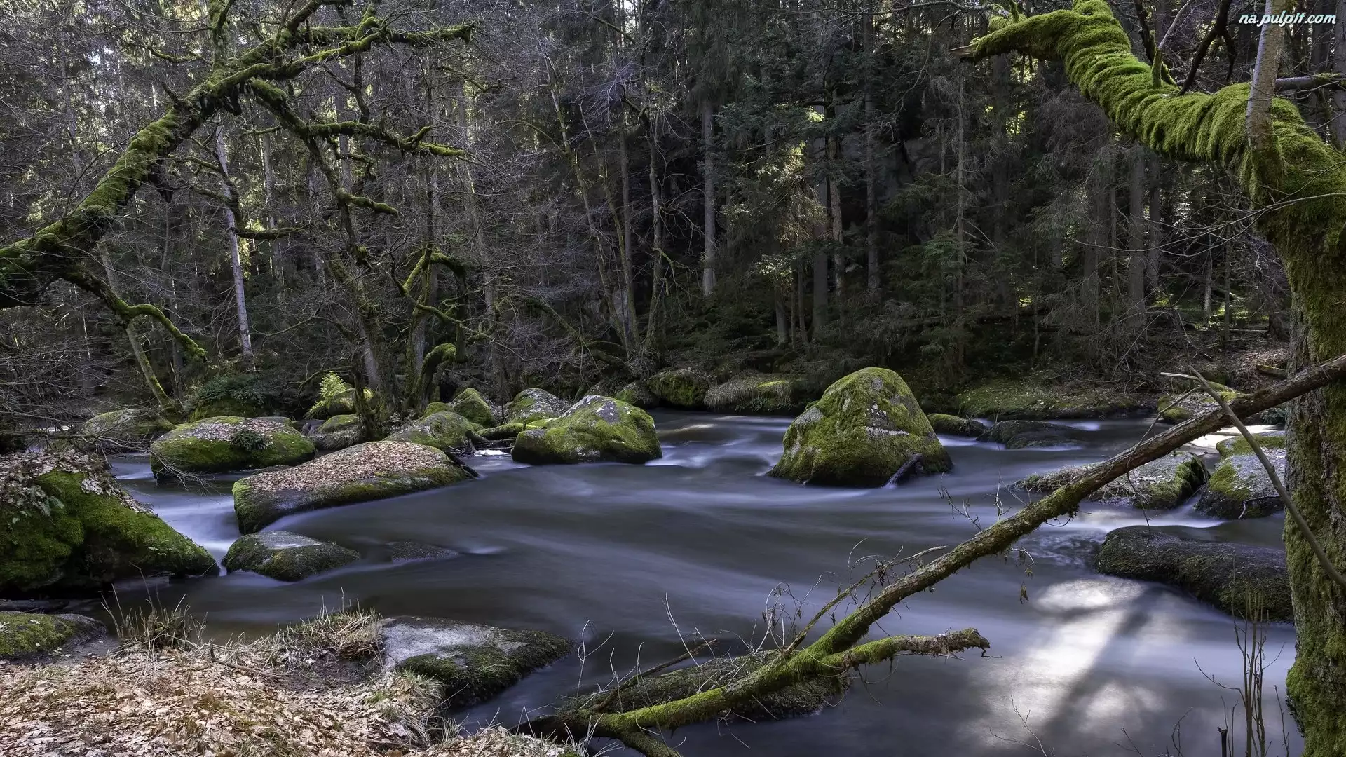 Drzewa, Las, Omszałe, Kamienie, Rzeka Waldnaab, Niemcy Na Pulpit