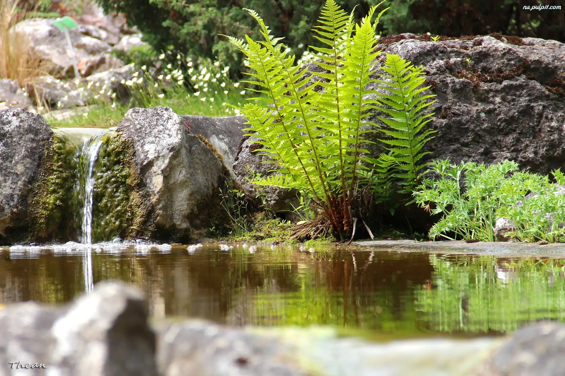 Kamienie, Oczko, Paprocie, Wodne Na Pulpit