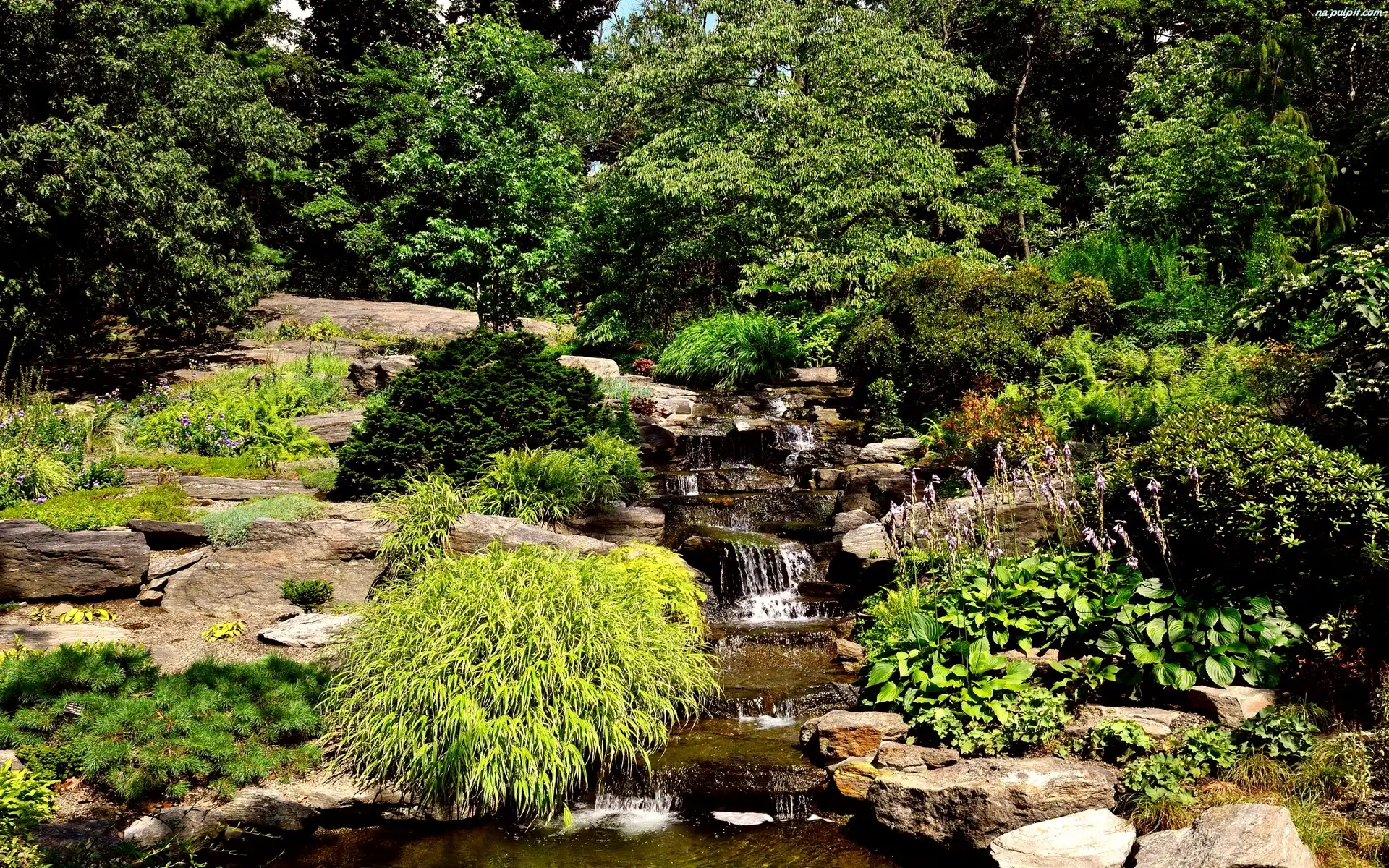 Kamienie, Strumyk, Park, Zieleń Na Pulpit