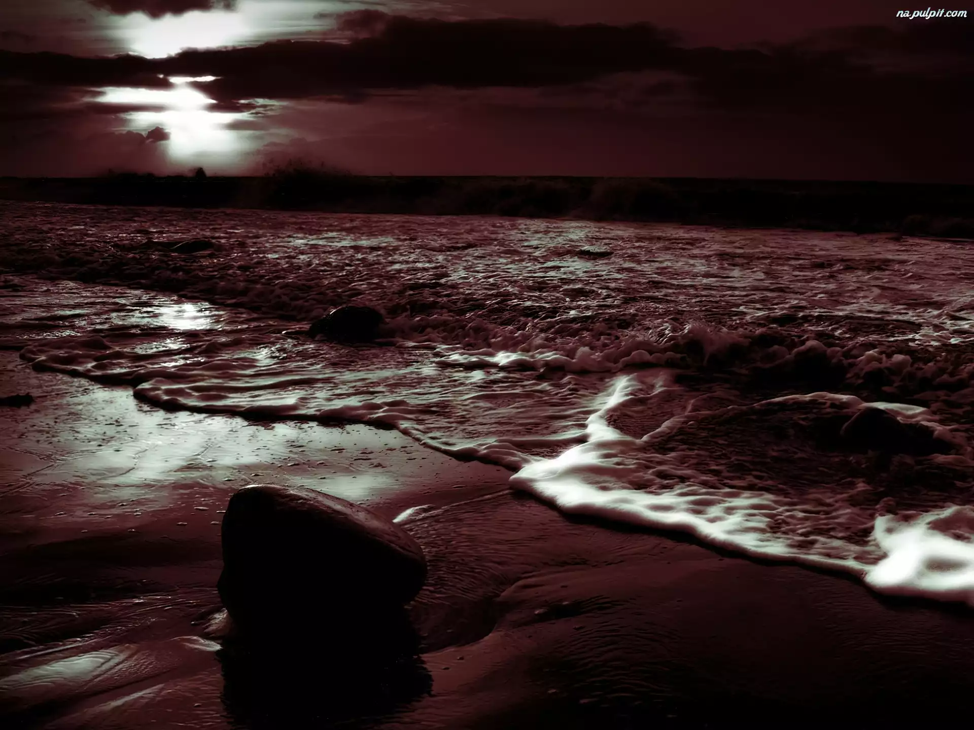 Kamienie, Nocą, Plaża, Piasek Na Pulpit